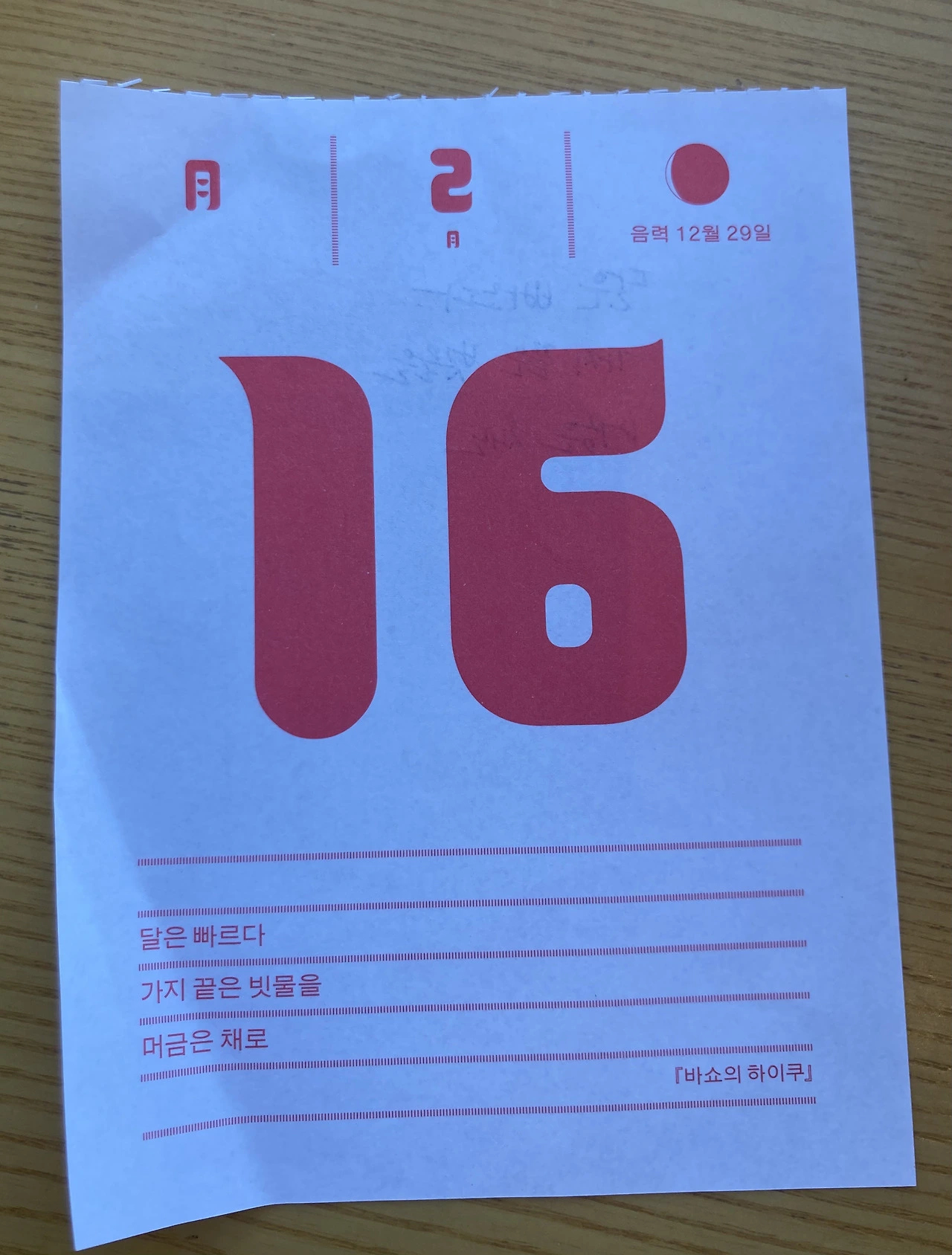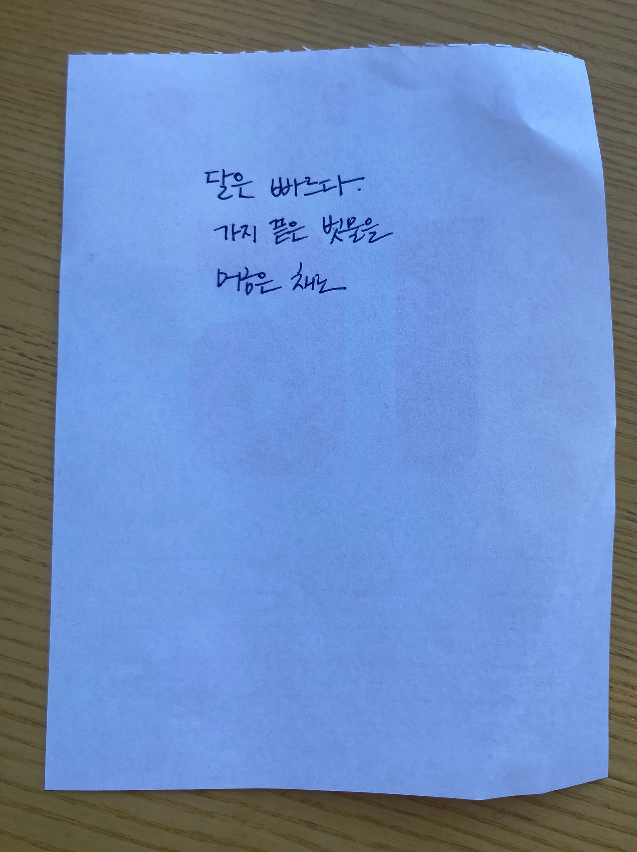 ‘하이쿠’는 일본 문학의 시 종류 중 하나다. 각 행마다 글자수가 정해져 있고, 계절의 특징이 드러나는 구절이 들어간다. 평민들에게서 시작되었고, 짧고 자유롭다. 오늘의 문장은 ‘바쇼’라는 사람이 쓴 일본의 시 하이쿠다.