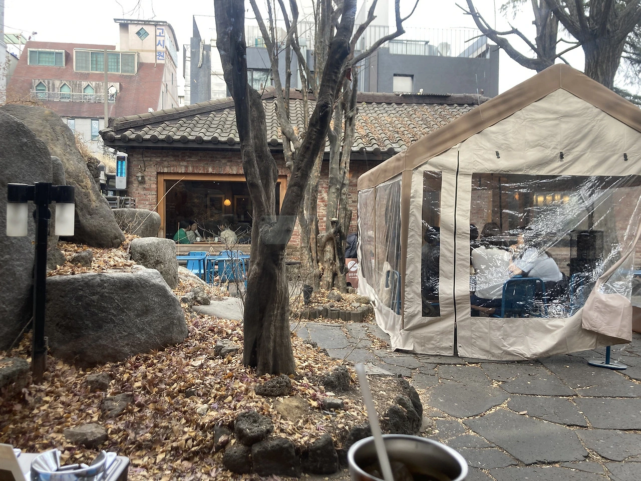 <프릳츠 장충점>은 입구를 뒤쪽 한옥느낌의 건물 쪽으로 따로 뺐다. 전에 커피빈이 있을 땐 평범한 상가 문을 열고 들어가는 식이라, 안에 한옥 같은 별채가 있는지 상상이 안 가는 구조였다.