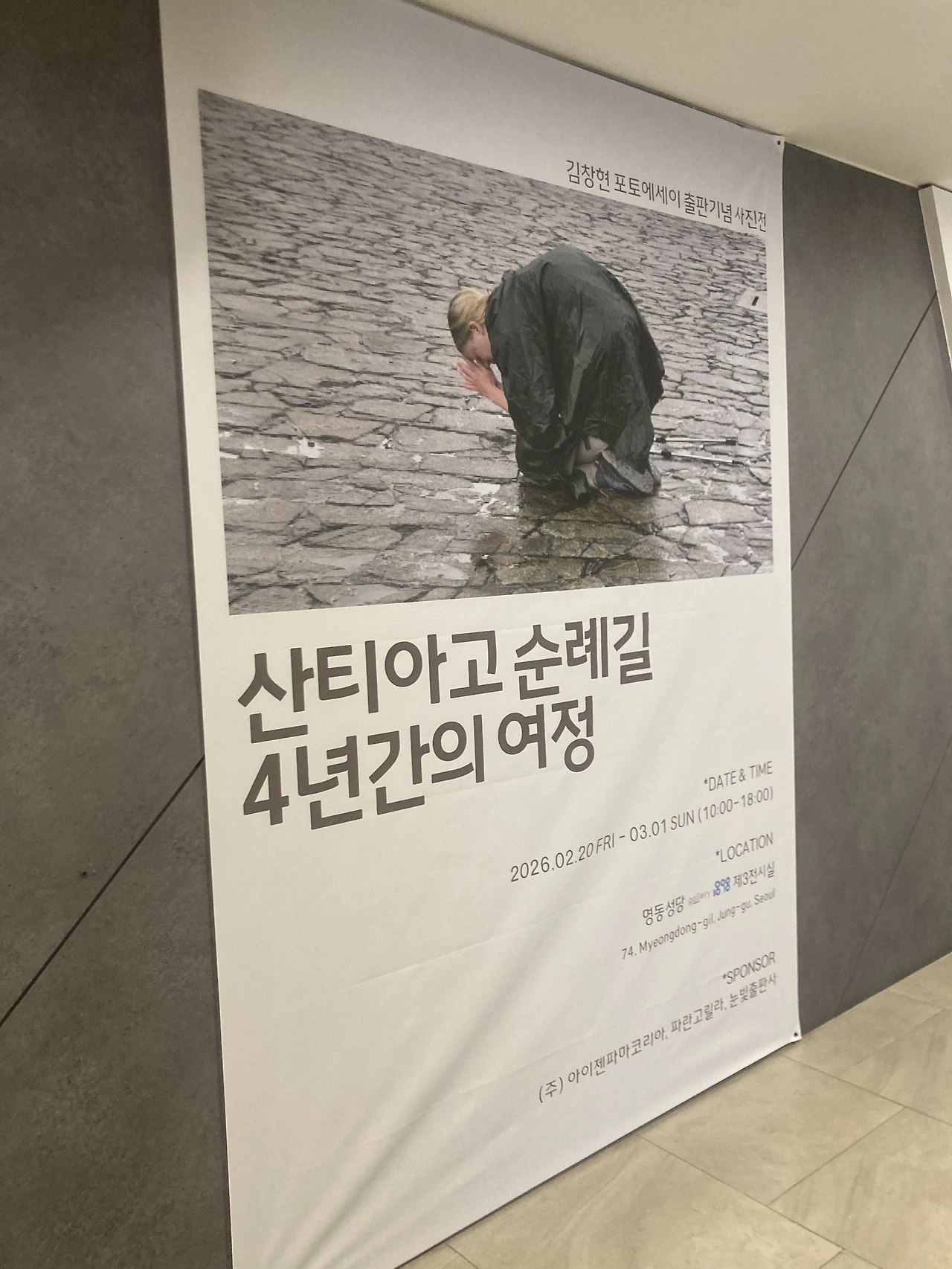 원래 영등포 쪽 카페에 가면, ‘더 현대 서울’에서 하고 있는 전시회에 가고 싶었다. 멀어서 포기하고 근처 전시회를 알아봤는데, 명동성당 지하에서 산티아고 순례길 사진전이 열리고 있었다. 엄마도 산티아고 순례길에 관심이 있어서 딱 좋은 코스다. 게다가 무료.