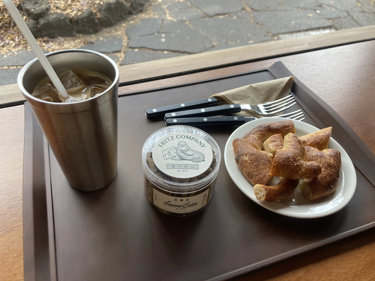 지치니까 빵도 시켰다. 속초 <사잇>에서 봐서 이름을 알고 있는 ‘푸가스’라는 빵과 김쿠키다. 푸가스는 겉면이 바삭하고 질깃한 식감에 담백한 맛이났다. 좋아하는 맛.