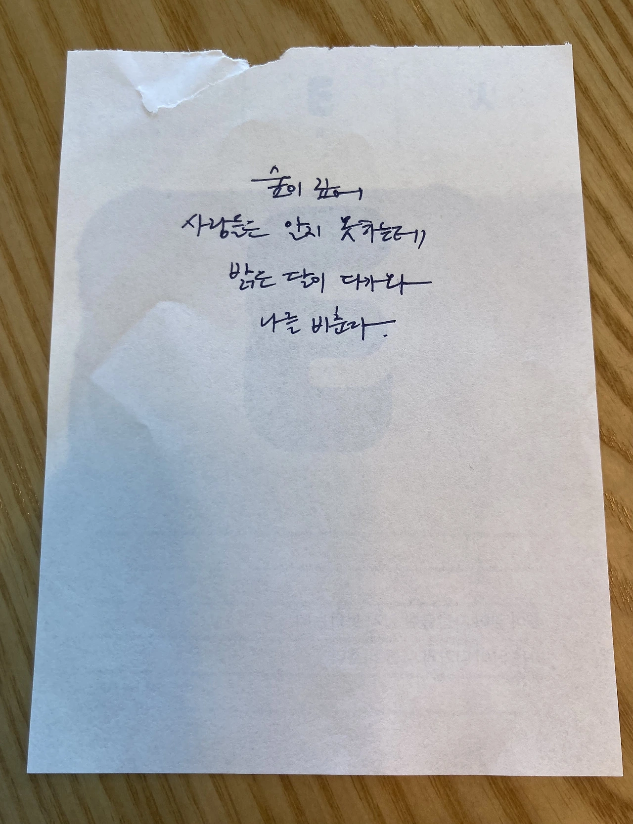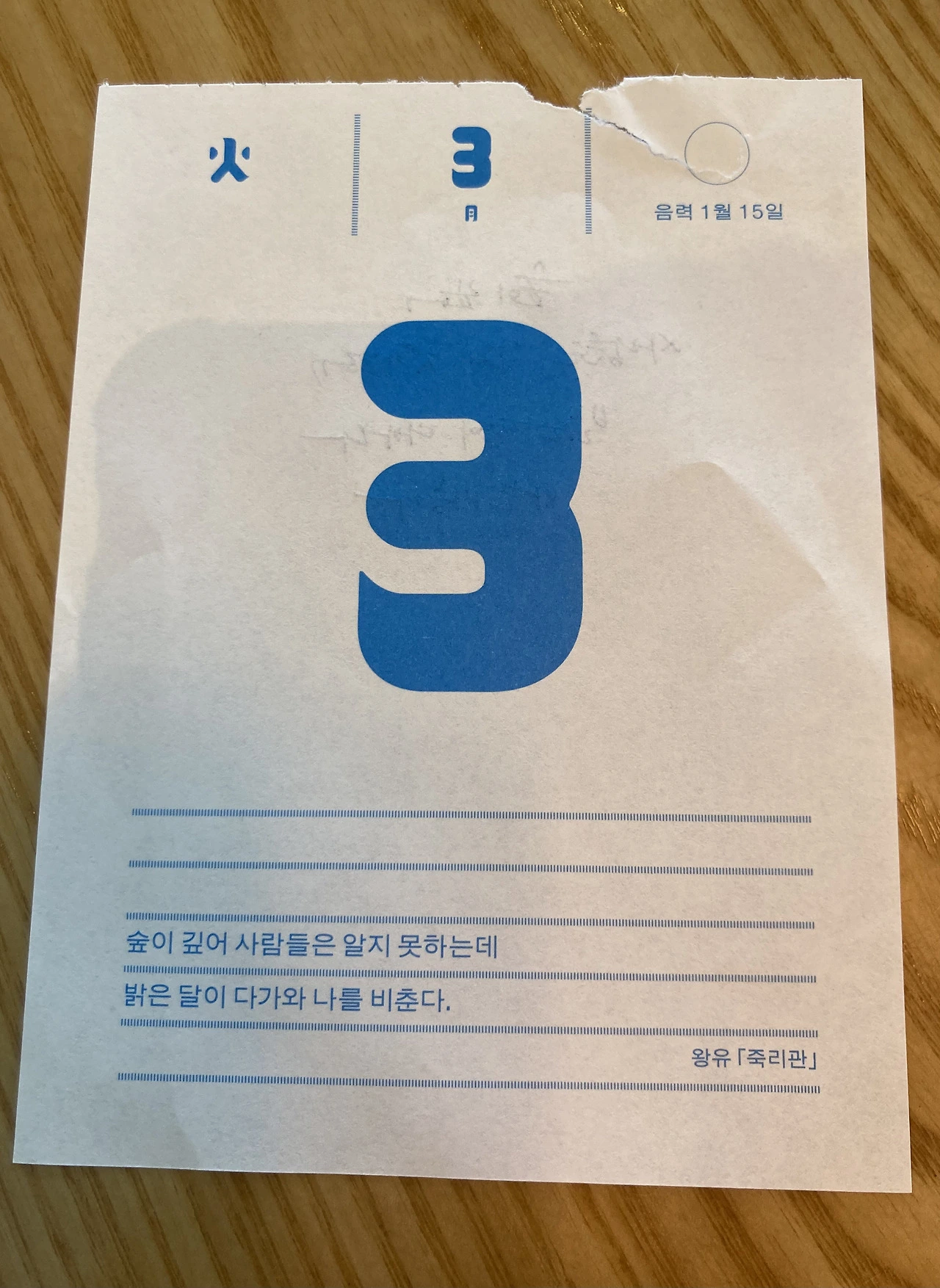 그림을 그리듯 표현하는 시를 지었다. 살아온 시대는 다르지만 일력에 담긴 시 구절이 나에게도 오롯이 전해진다. 숲도 달도 여전히 남아 있으니까.
