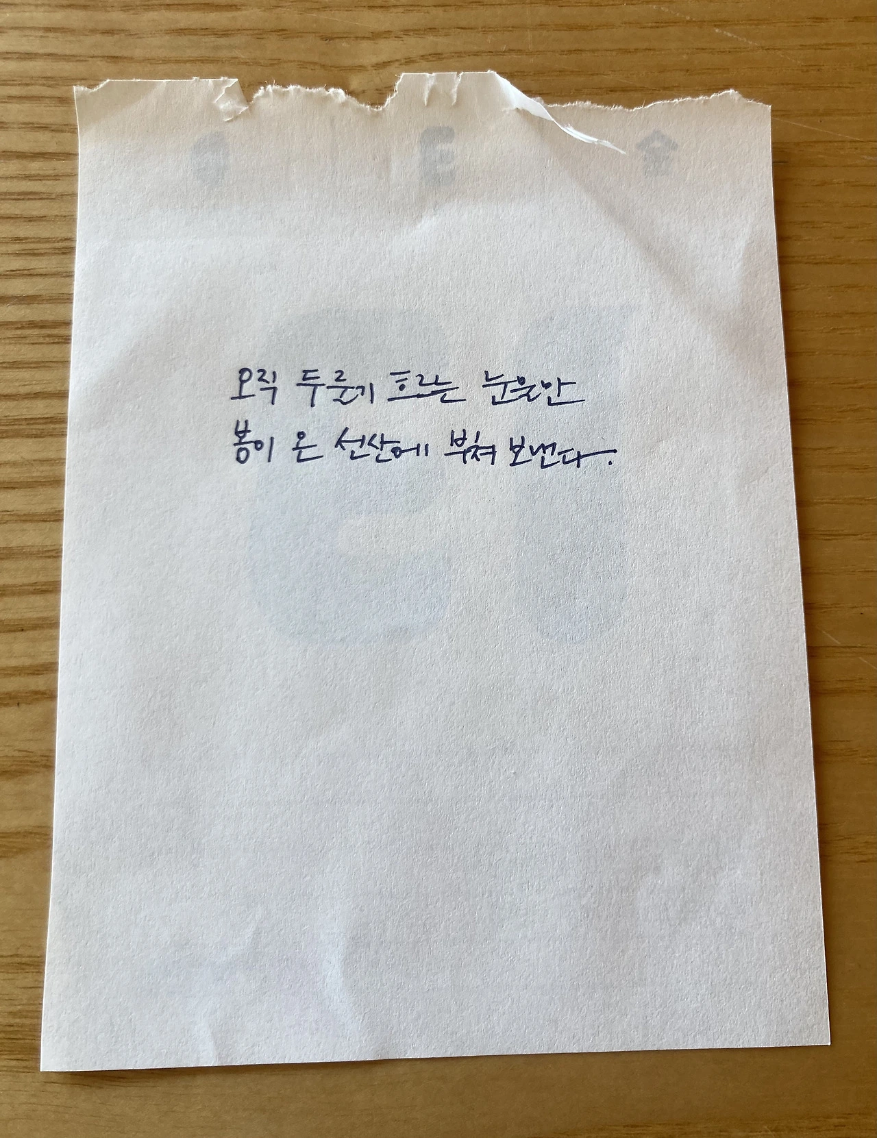 시장에 국산콩으로 만든 두부를 파는 곳이 있다. 순두부 하나에 2500원이라서 꼭 2개를 사게 된다고 엄마가 말했다.