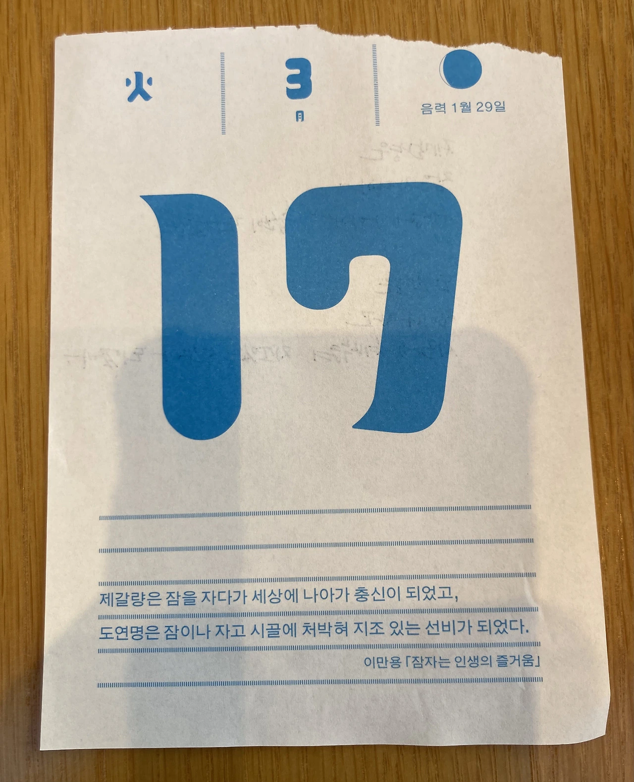 제4권에 오늘의 문장인 <잠자는 인생의 즐거움>이 있다. 한자로는 <寐(잘 매)辨(분별할 변)>이라고 쓰는데, ‘잠에 대한 변론’이라는 뜻이다. 제목에서 알 수 있듯이 잠을 나쁘게만 보는 시선에 반대하는 내용이다.