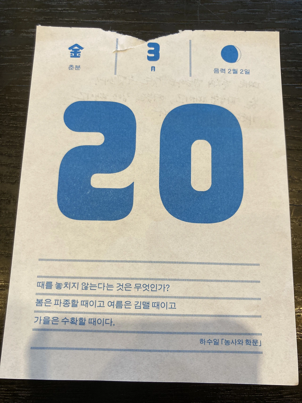 오늘의 문장은 나와있는 부분만 보고도 대충 이런 뜻이구나 하고 이해가 갔다. 제목이 <농사와 학문>인 걸 보니, 농사에 때가 있듯 학문도 때를 놓치지 말고 열심히 하라 이 소리구만.