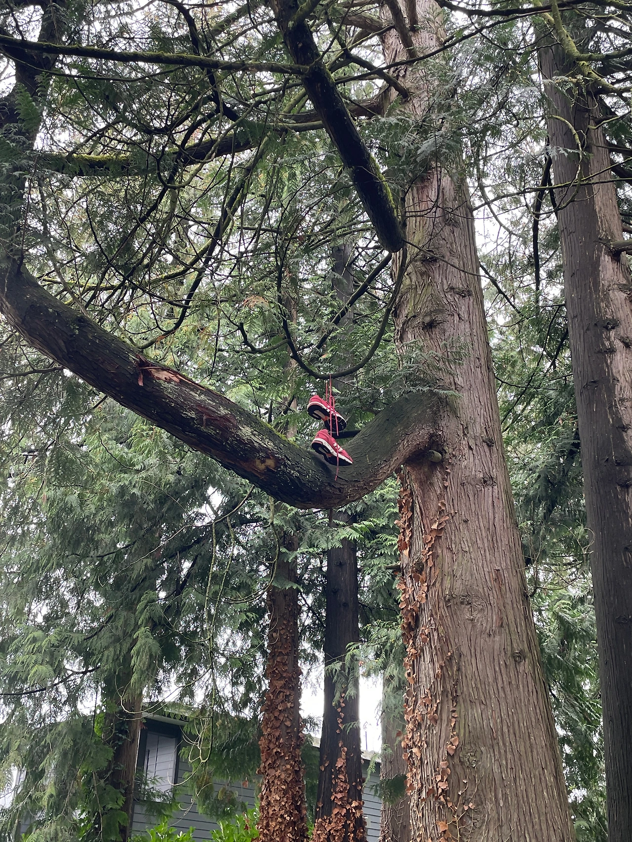 나무 위에 올라가져 있는 신발을 보고 우리나라에는 이 광경이 없으니까 신기하기도 했지만