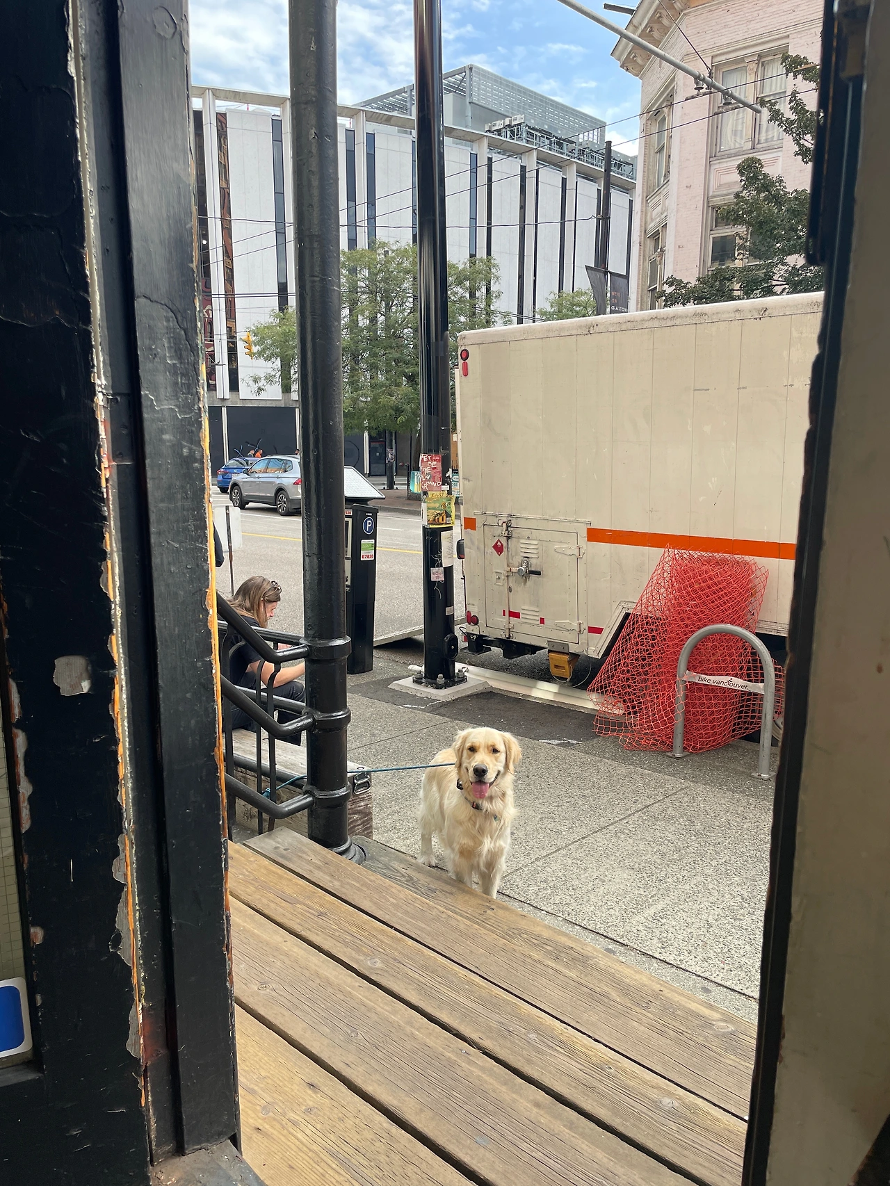 여기는 진짜 큰 강아지들이 많은데 너무 귀여운 강아지가 또 주인을 기다리고 있다.