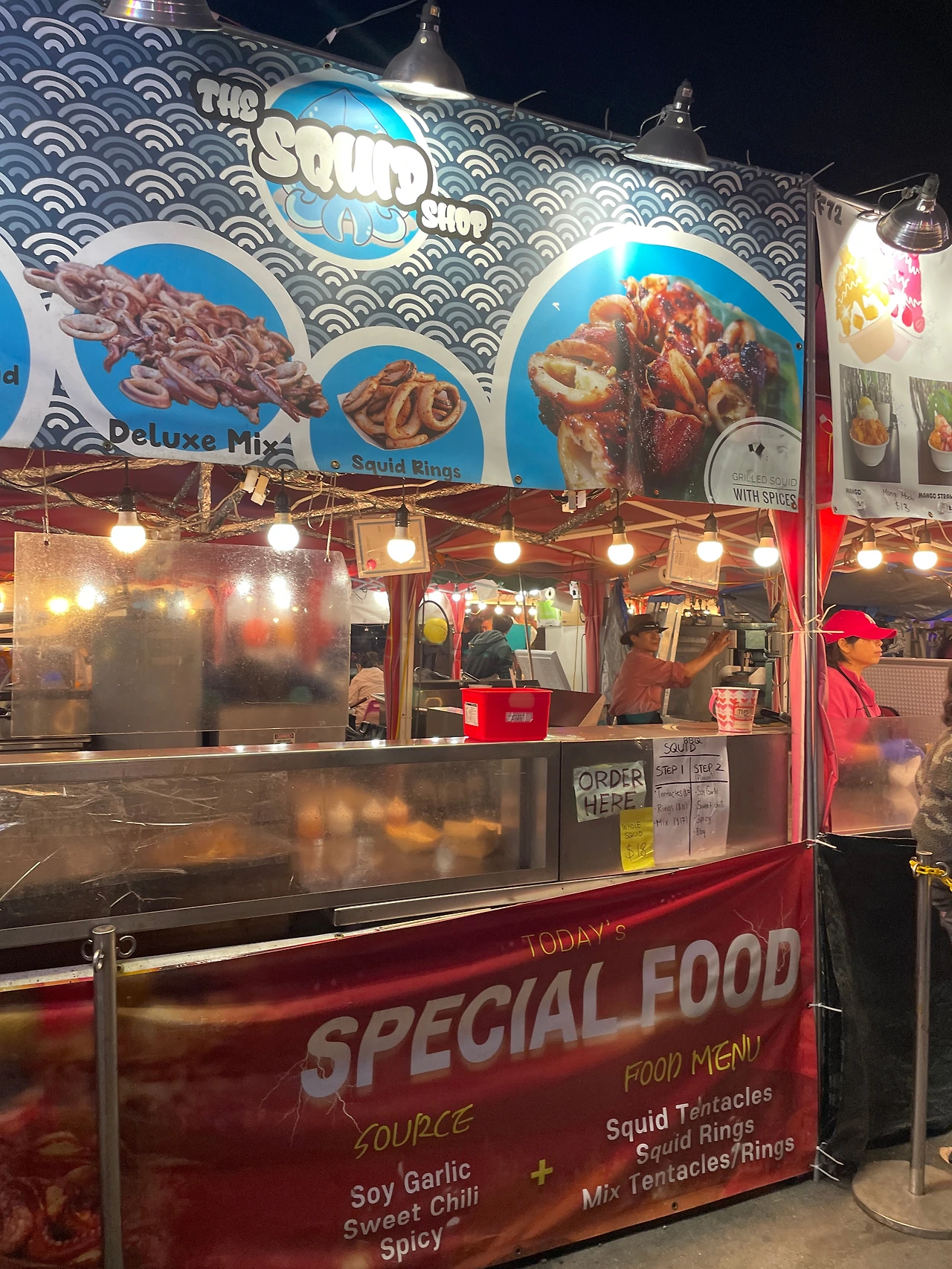 밖에서 봤을 때는 조금 허접해 보였는데 안에 들어가니 사람도 진짜 엄청 많고, 완전 이건 제대로 된 야시장이다 라면서 눈 돌아갔다.