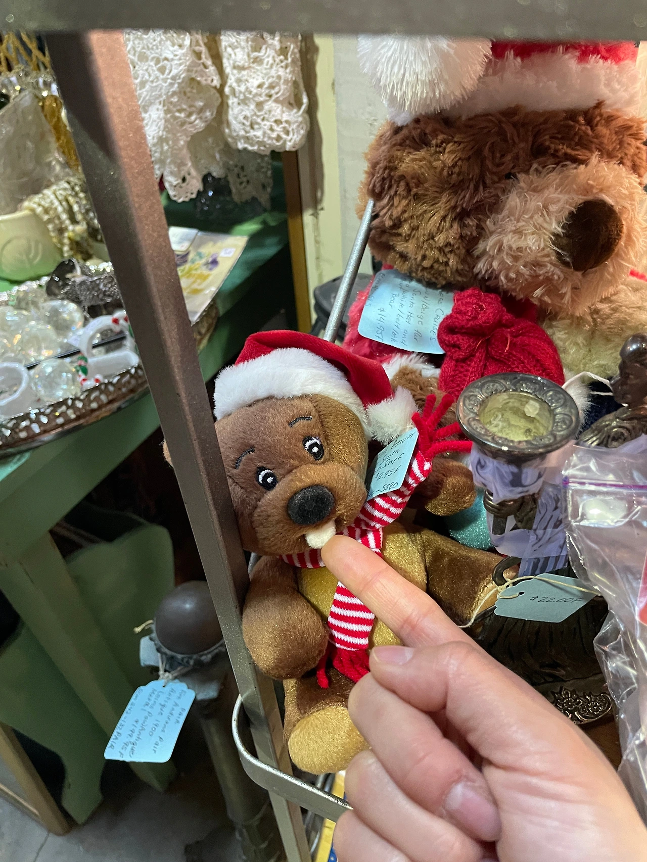 비버 인형 같은데 비버 이빨이 자일리톨 하나 물고 있는 것처럼 왕 크다.