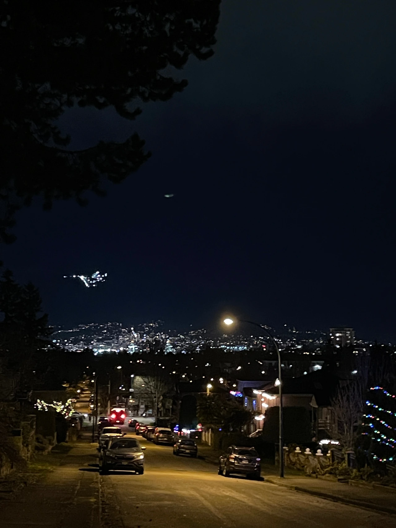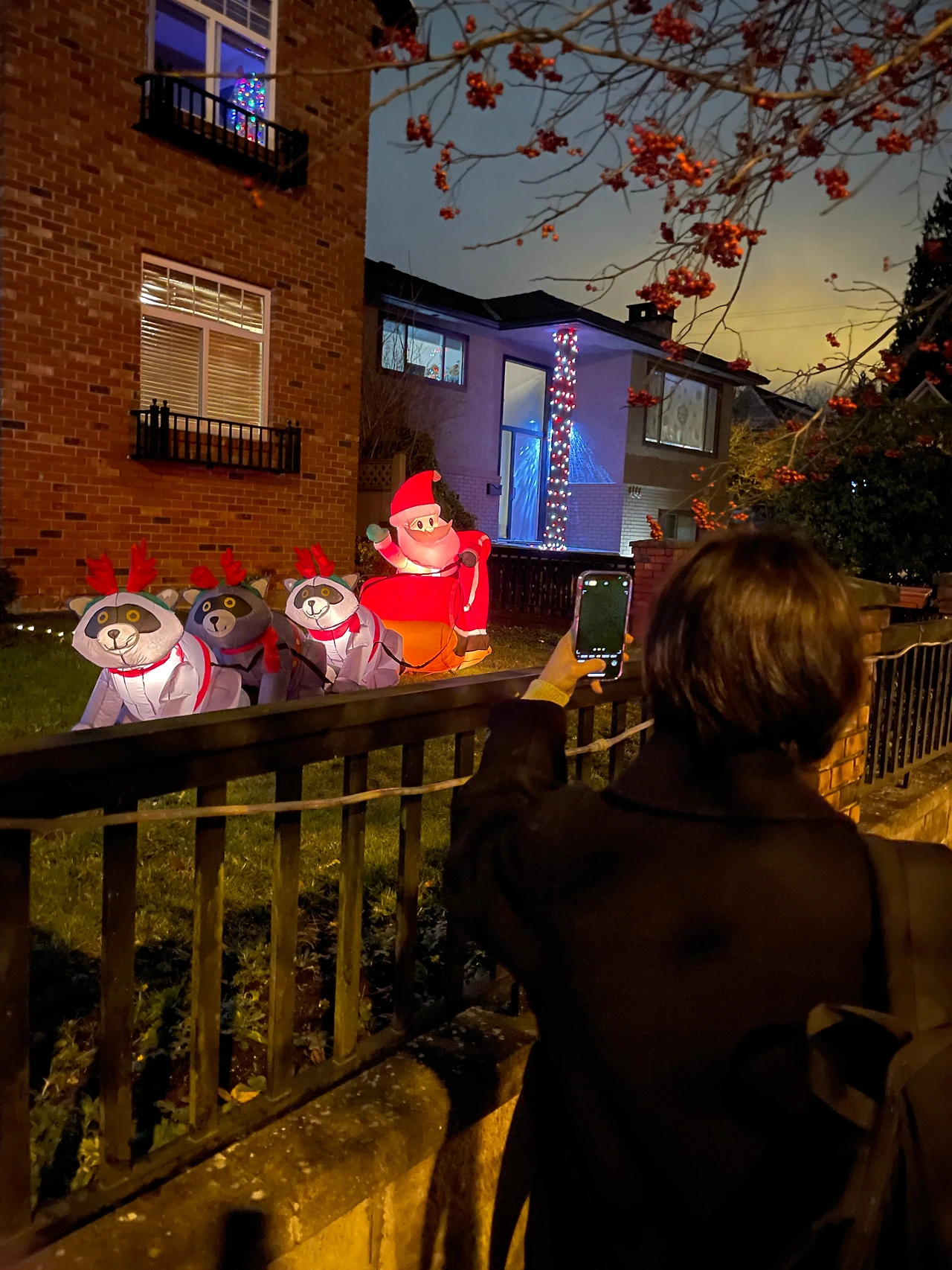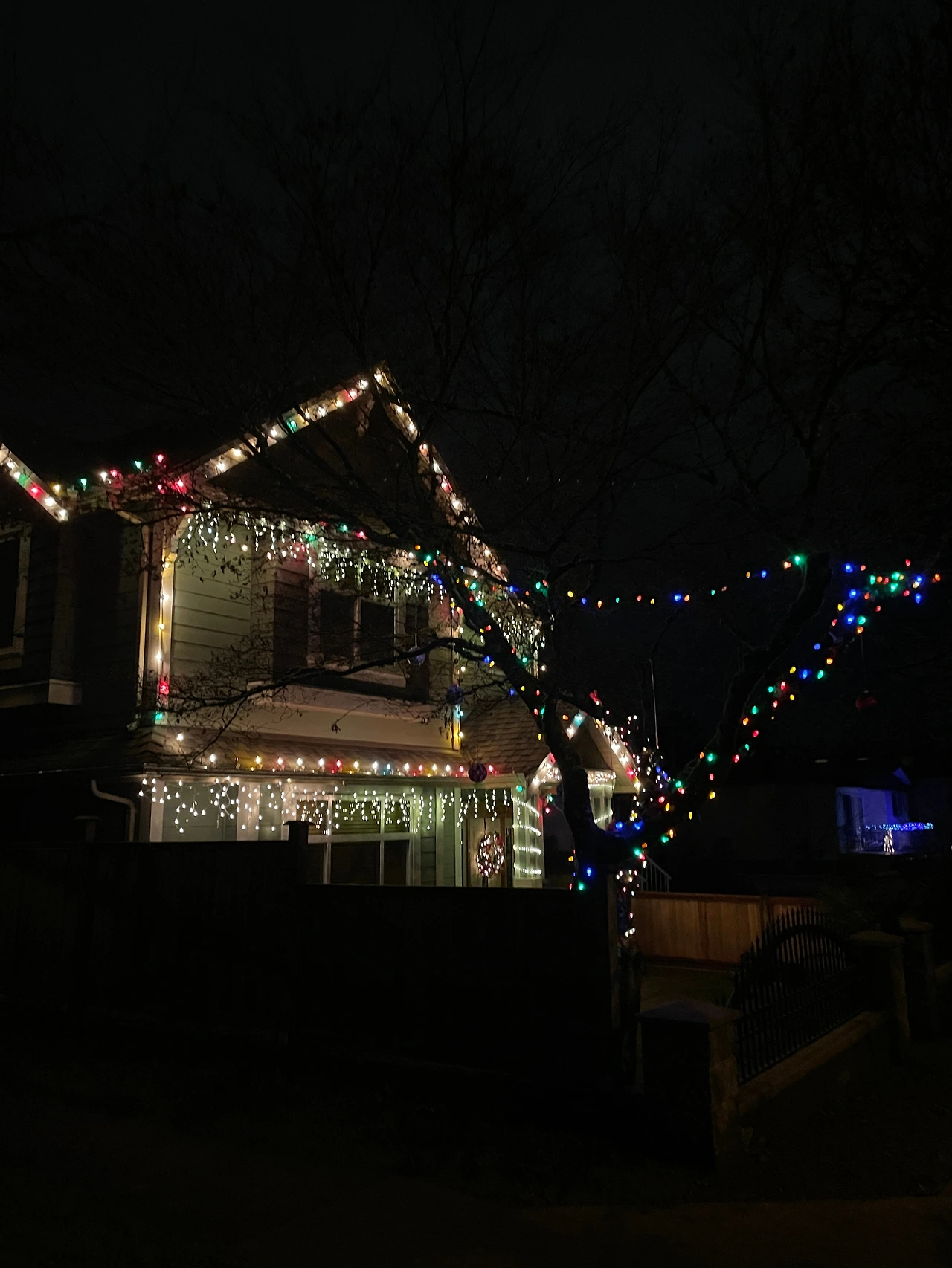 갖가지 크리스마스 장식들과 알록달록한 조명들. 밴쿠버의 겨울밤이었다.