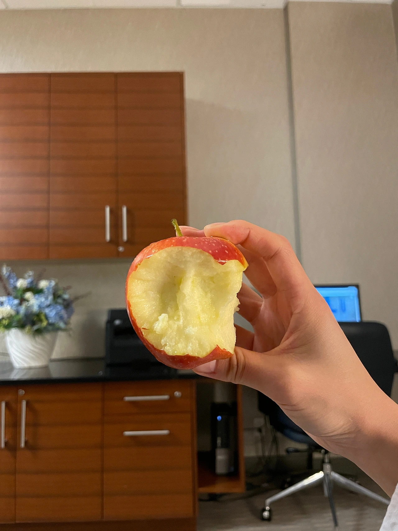 놓여있는 사과도 한 움큼 먹으면서 시간 보냈다.