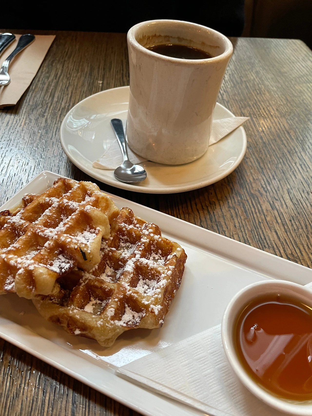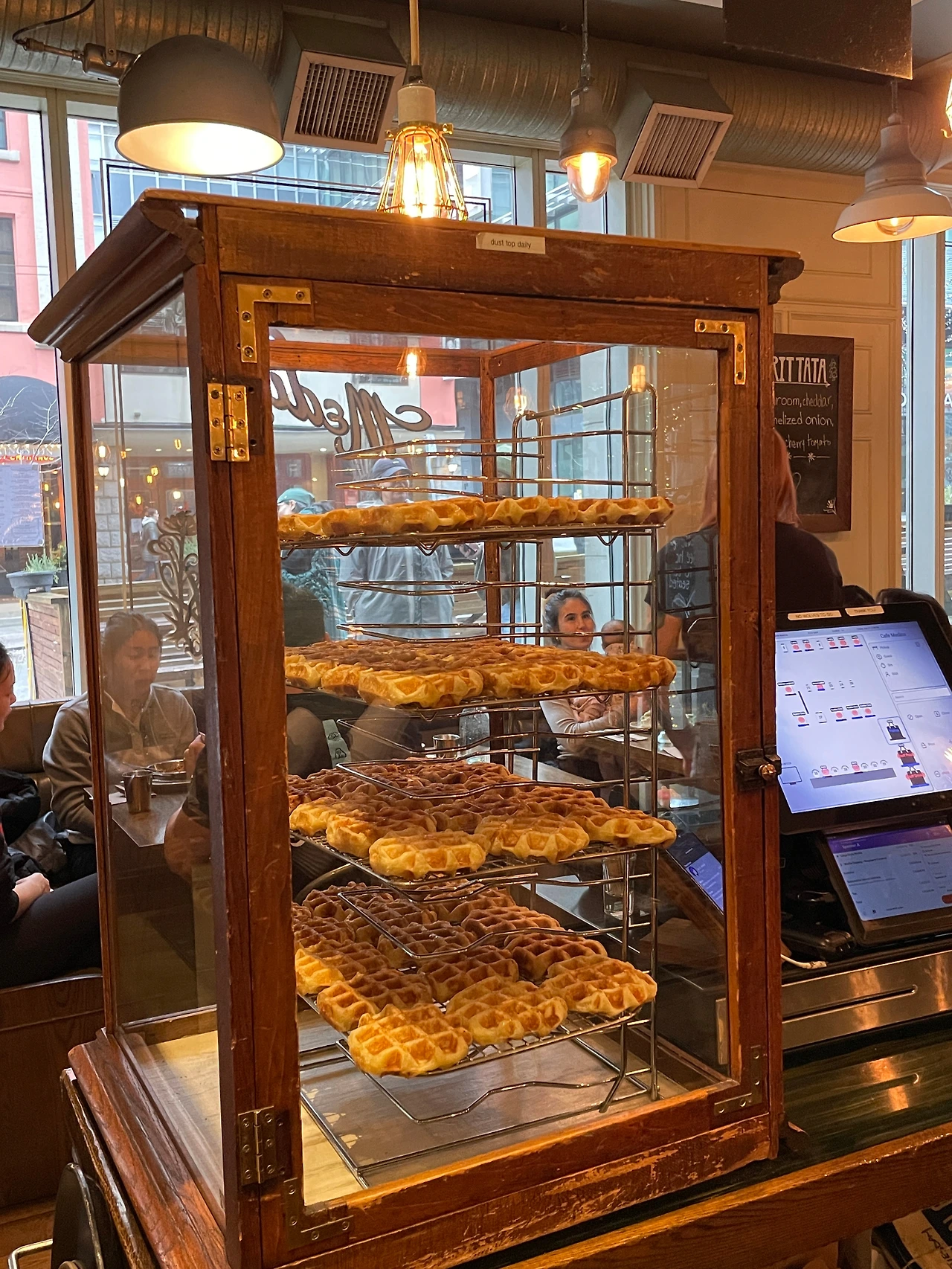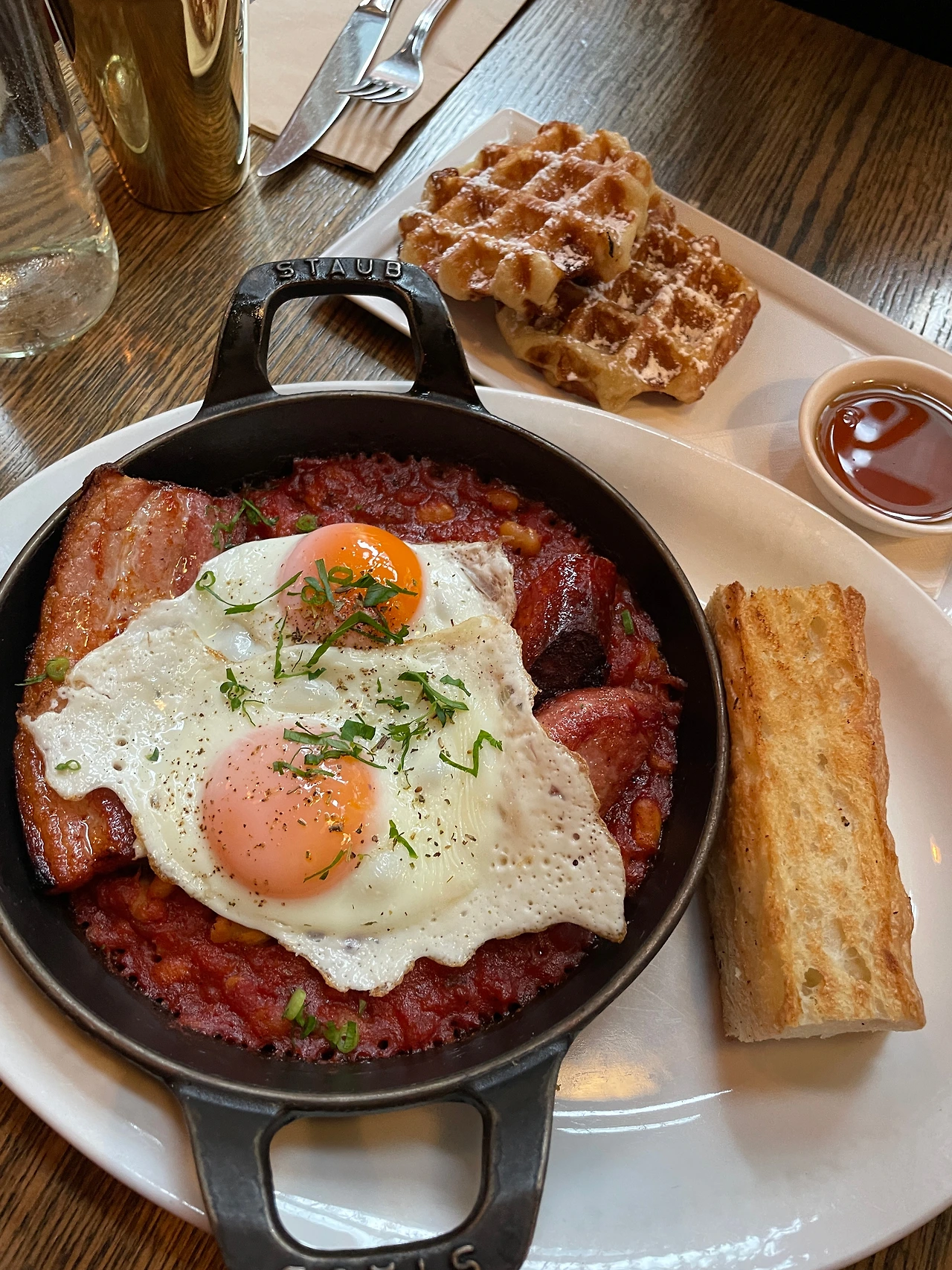 여기 와플이 유명해서 와플 시키고, 인터넷에서 많이 시킨다고 하는 메뉴 시켜서 먹었다.