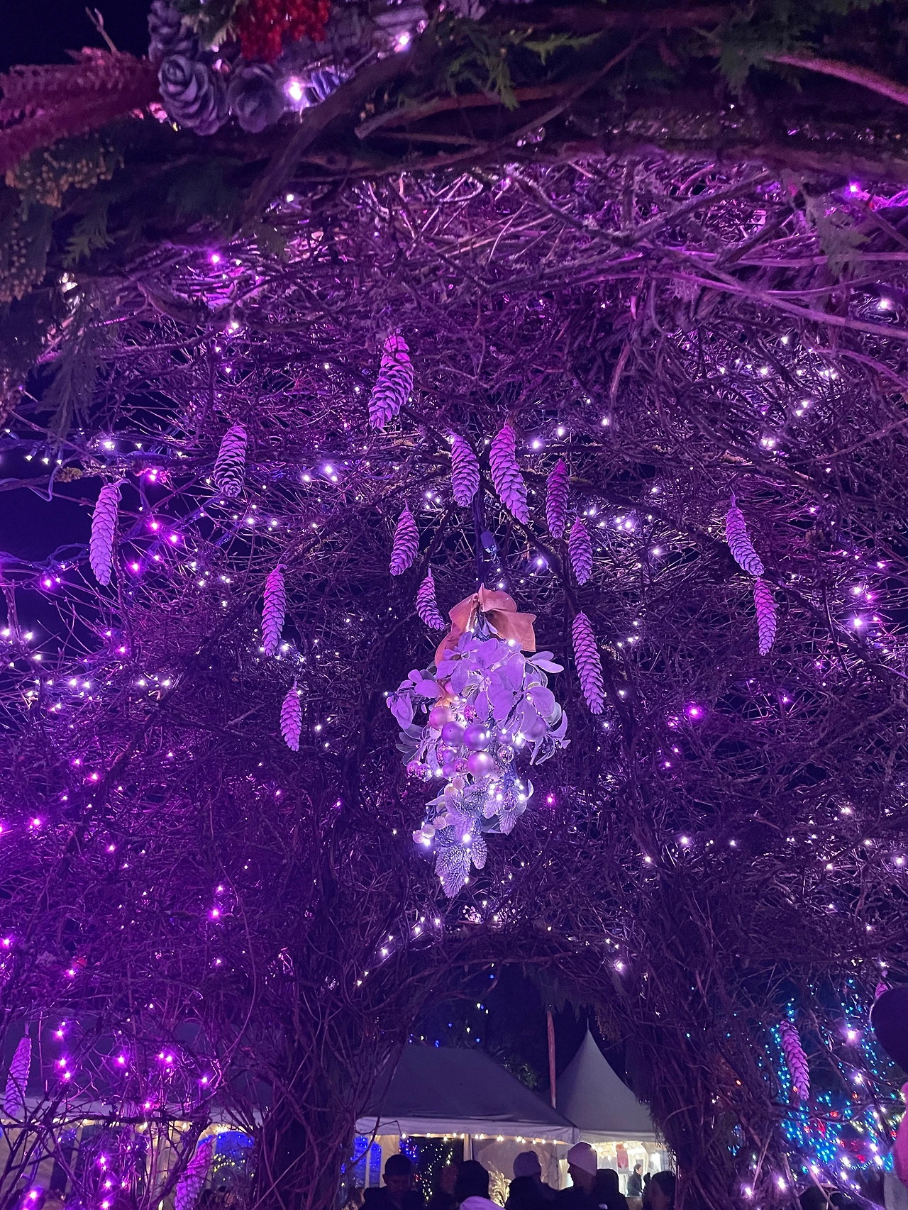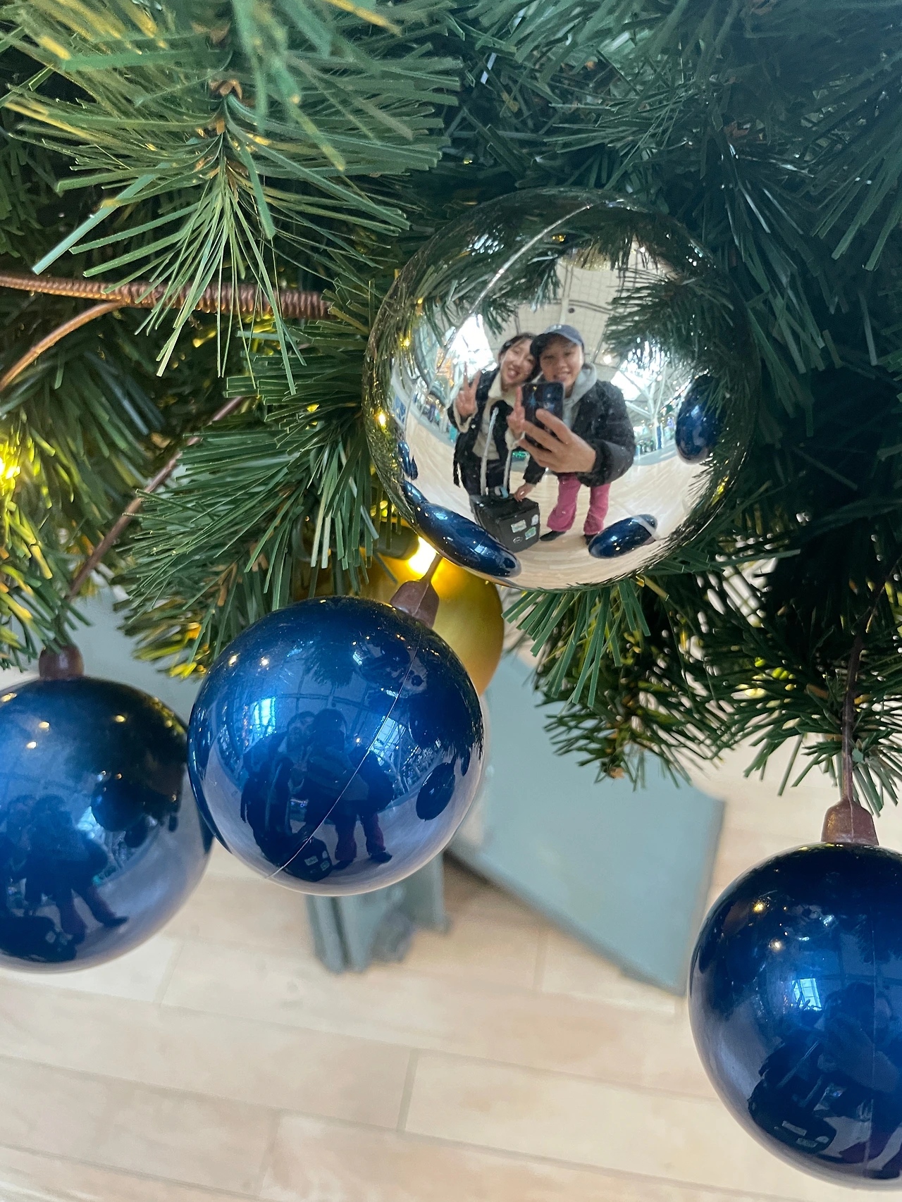 큰 트리 앞. 많은 군중들 사이 펭귄찾기.