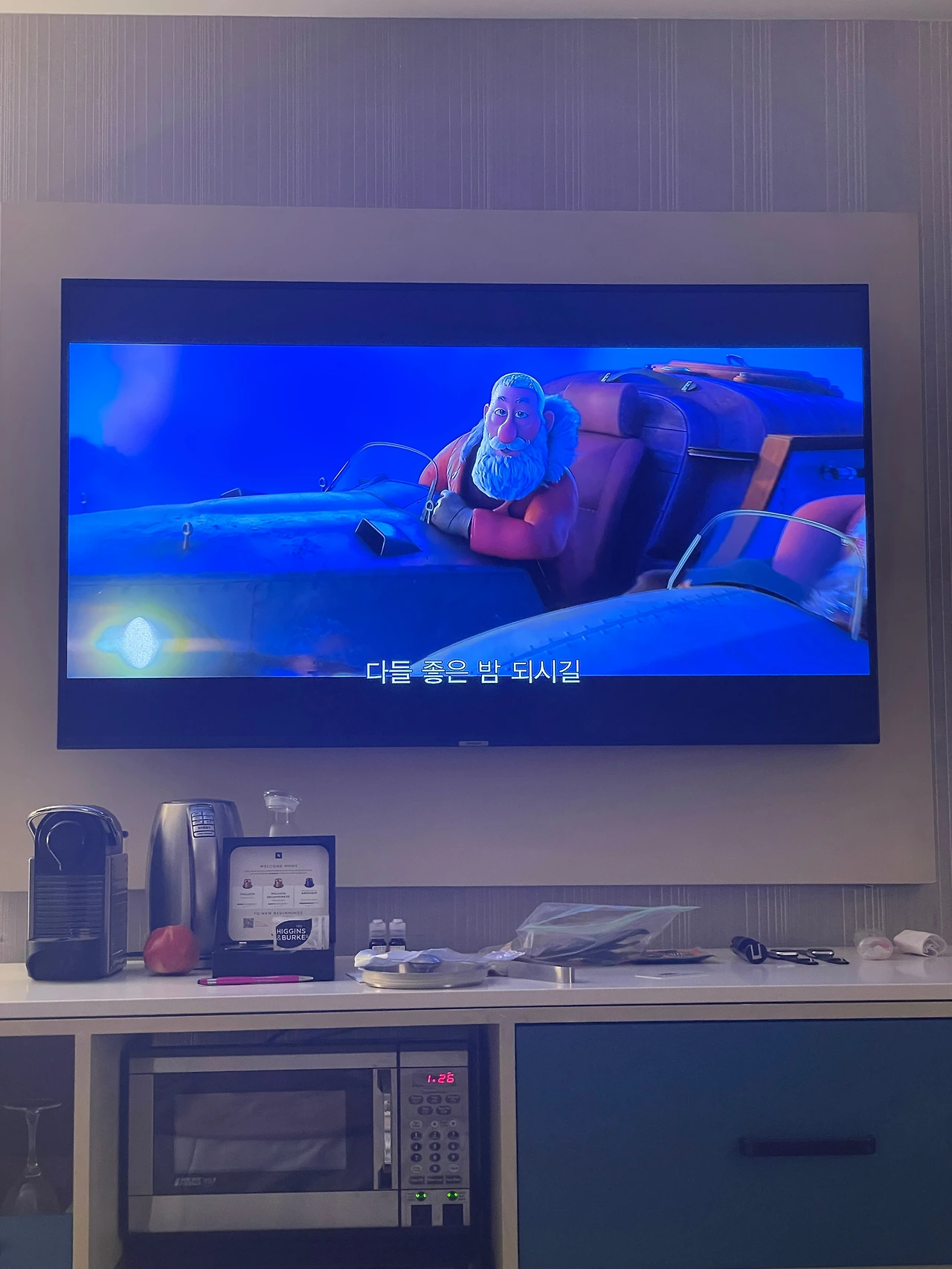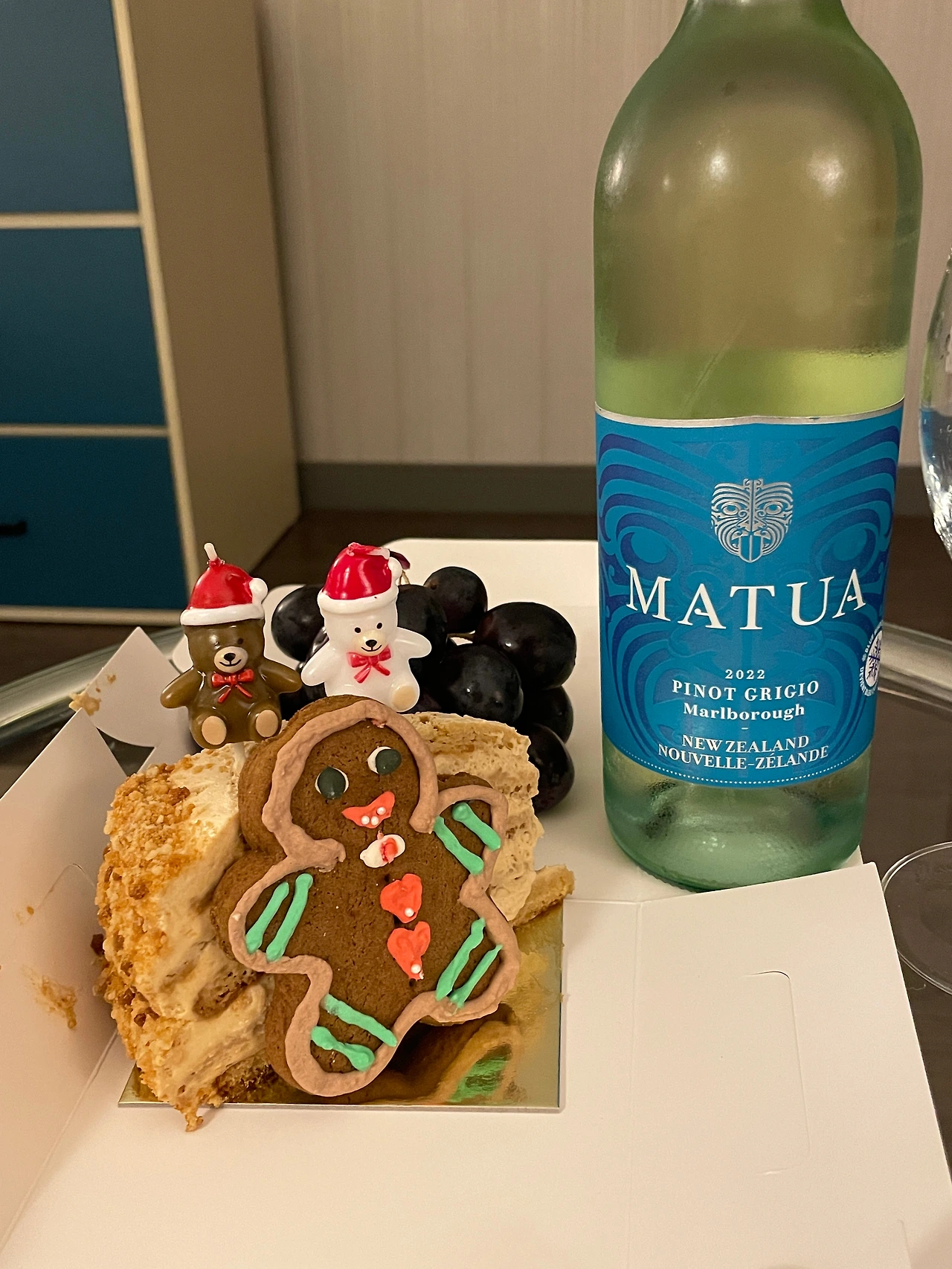 크리스마스이브 기념하면서 케이크와 과일, 와인 먹으면서 하루를 마무리했다.