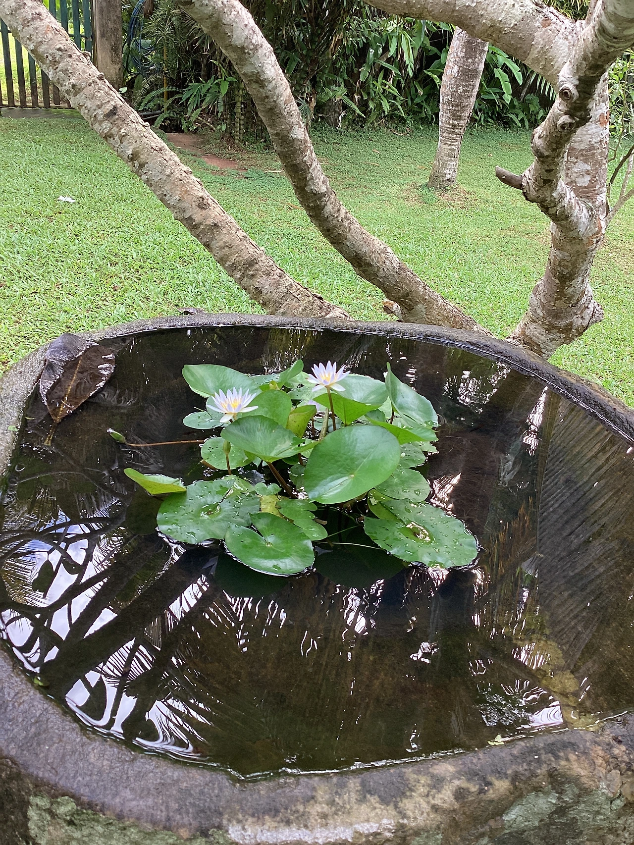 물 위로 색이 다른 꽃이 세 겹으로 정렬하듯 띄워져 있었다. 지난번 본 것과 다르지 않았다.
