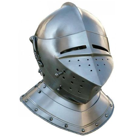 판금 투구. 면갑은 자주 분해할 필요가 있어 나사로 조립했다.