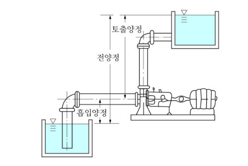 펌프가 유체를 퍼올리는 높이를 양정, 영어로는 헤드(head)다. Head를 그대로 번역하여 수두(水頭)라 하기도 한다. 펌프가 수면보다 위에 있는, 아래 그림과 같은 경우 수면에서 펌프까지의 양수 높이가 흡입양정(suction head), 펌프 이후 쏘아올리는 높이가 토출양정(discharge head)다.