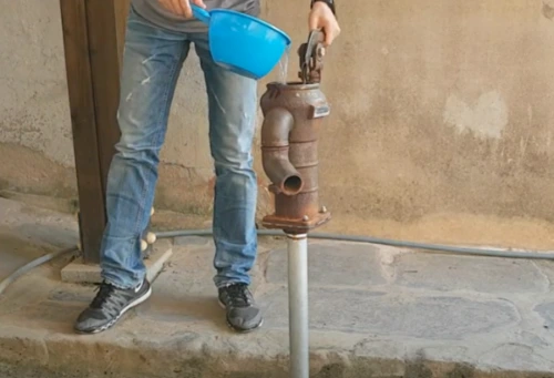 어쨌든 이렇게 수면보다 위에 설치된 펌프는 스위치를 넣기 전에 반드시 케이싱 위쪽에 있는 마개를 열고 마중물을 부어 주어야 한다. 케이싱과 흡입배관을 물로 채우면서 공기를 빼 주는 작업인데, 영어로 프라이밍(priming)이라 하며 왠일인지 우리말이 없다. 프라이밍 워터는 '마중물'이라는 고급스러운 우리말 용어를 현장에서도 널리 쓰는데 프라이밍은 '마중'도 아니고 뭐라 해야 할지 모르겠다. 이 프라이밍 작업은 50대 이상 한국인이라면 거의 다 어렸을 때 해보셨을 것이다. 작두라고도 했던 수동 지하수 펌프로 물을 풀 때의 이야기다.