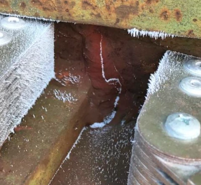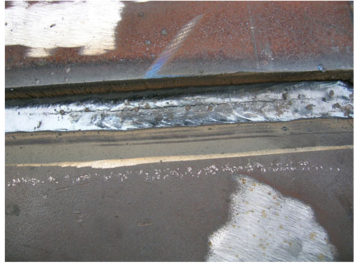 용접부에 생긴 균열(crack). 이렇게 육안으로 보이면 다행이다.
