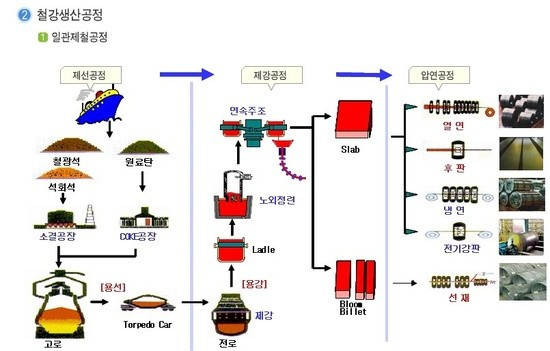 이상의 제철 공정을 요약하면 다음 계통도와 같다.