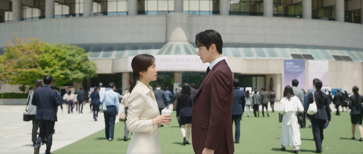 특히 <나의 완벽한 비서>는 드라마나 영화에서 가장 찍기 힘들다는 서울 종로 한복판을 배경으로 미장센을 그려 나간다. 수많은 인파와 도시의 삶을 그려내는 리얼리티 안에서, 봄기운과 함께 그려내는 이 작품의 미장센이 그토록 인상적인 이유가 여기에 있다. 특히 종로의 중심이라고 할 수 있는 광화문 키스신은 이 작품이 미장센에 얼마나 공을 들였는지 알 수 있는 부분이다.