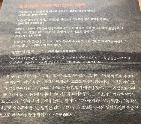 넷째, 소로우의 자서전이자 최초의 녹색 서적이 아닐까라고 덧붙였다.
