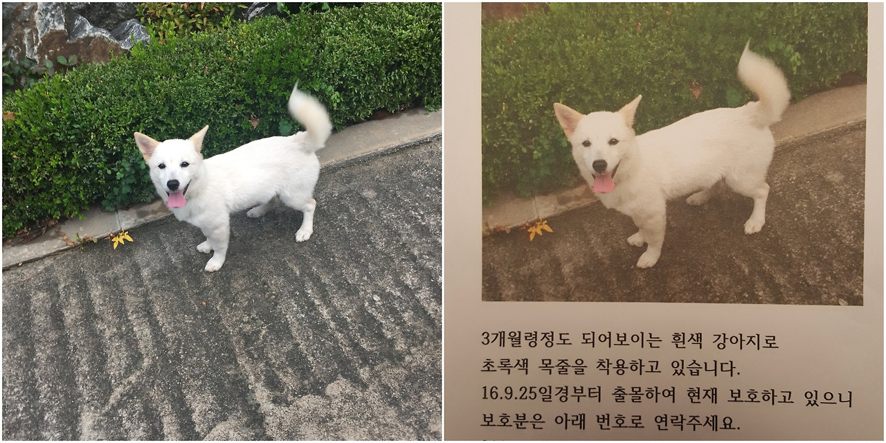가까이서 사진을 찍고 전단을 만들었다. 이집 저집에 “혹시 주인을 아느냐”고 묻고 다녔다. 한 번은 개와 함께 좀 멀리 나갔던 가족이 “전봇대에 묶어두고 가면 주인을 찾아 보겠다”는 말을 들었다. 그랬다간 이 개로 동네 잔치를 벌일지 모른다는 걱정이 스쳤고, 우리는 며칠 지나지 않아 붙였던 전단지를 모두 뗐다.