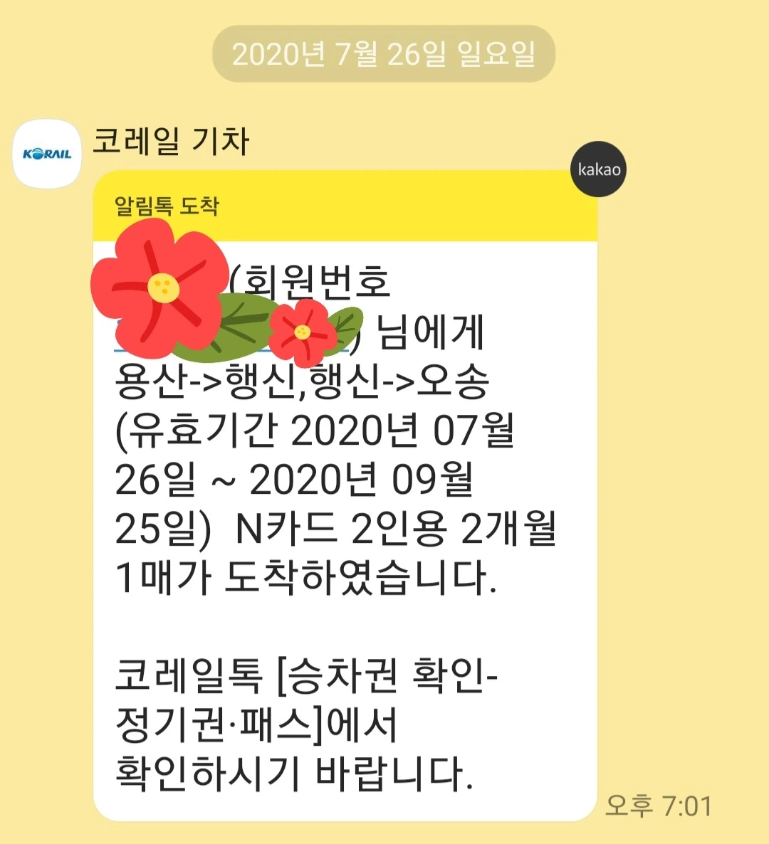 남편과 교통비에 대해 논의를 했다. 그러다가 우리가 내린 결정은 ‘N카드’를 이용하는 것이었다. 이 N카드는 이용 횟수와 이용구간을 선택하여 구매하면, 유효기간 내에 주중, 주말 구분 없이 열차 출반 전까지 할인승차권을 구매하여 이용할 수 있다. 자유석을 예매할 때 기본 할인이 15% 정도 되니 우리가 계속 이 카드를 이용한다면 더 이득을 보는 것이다. 유효기간이 끝나면 다시 똑같이 설정하여 구매하면 끝. 주로 남편이 2인용을 구매하여 나에게 공유해준다.