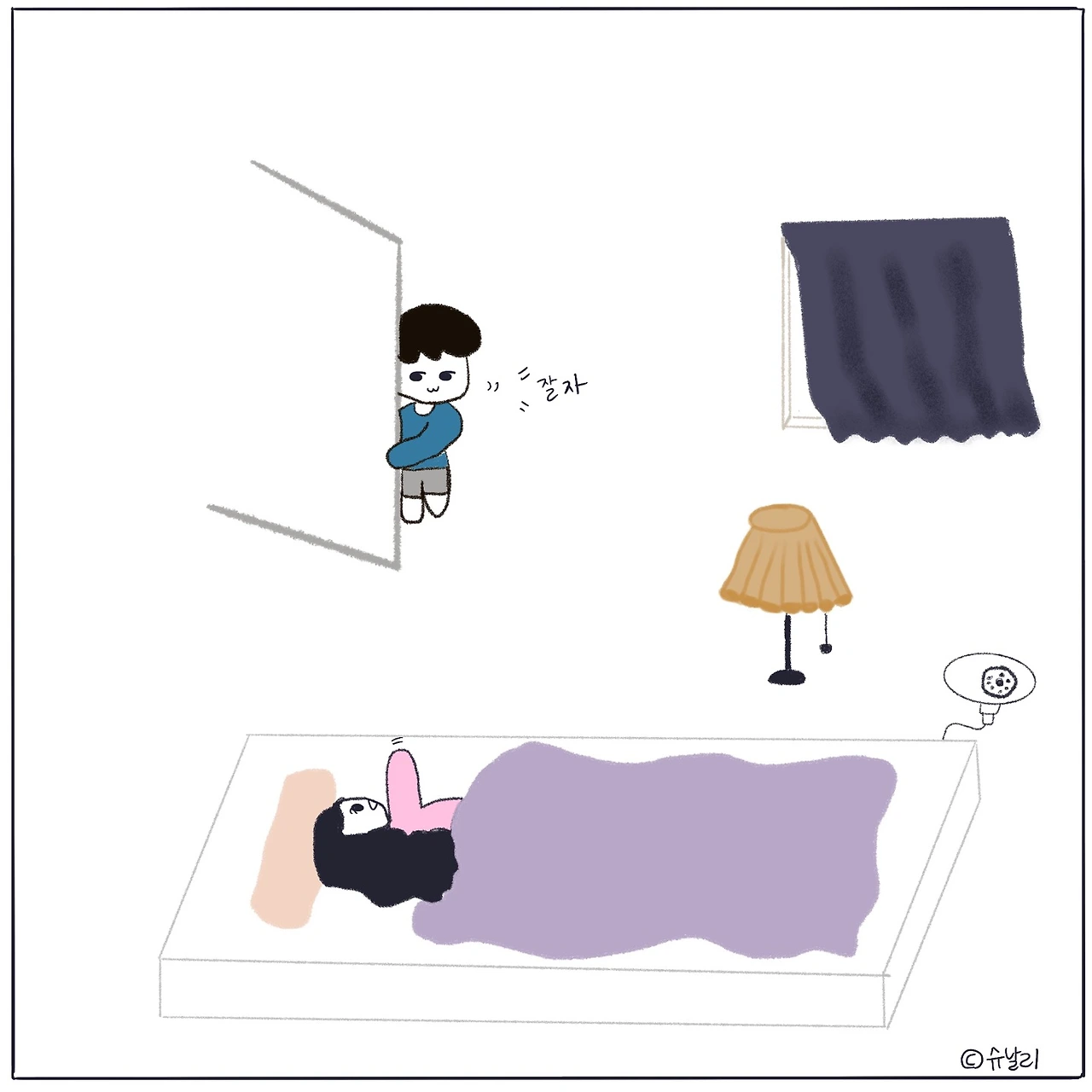 우리도 처음부터 따로 잔 건 아니었다. 서울 원룸텔 시절엔 지금보다 훨씬 더 좁은 침대에서 함께 누워 잔 적도 있었다. 장거리 장수 커플 타이틀답게 여러 시행착오를 겪다 보니, 서로를 위해서는 따로 자는 게 낫다는 생각이 자연스레 든 것 같다(철이 들었지). "서로 꼭 껴안고 자는 시기는 이미 지났다."라는 말도 이제는 웃으며 얘기할 수 있다.
