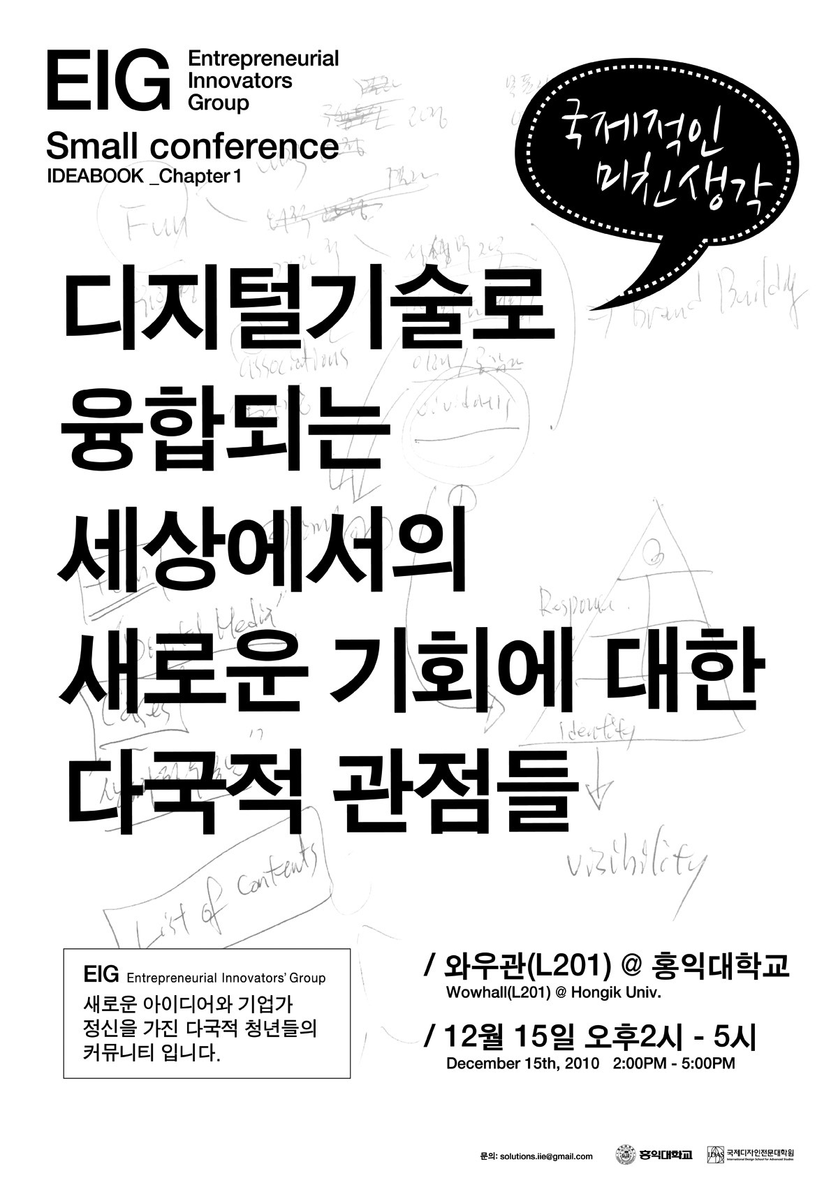 2010년 당시에 지금 유행하는 다양한 digital technologies와 crowdfunding, Jugaad innovation 등과 같은 개념을 발표했던 기억이 생생합니다. 다음은 Silolab의 zizizik이 디자인했던 창립 컨퍼런스의 포스터입니다.