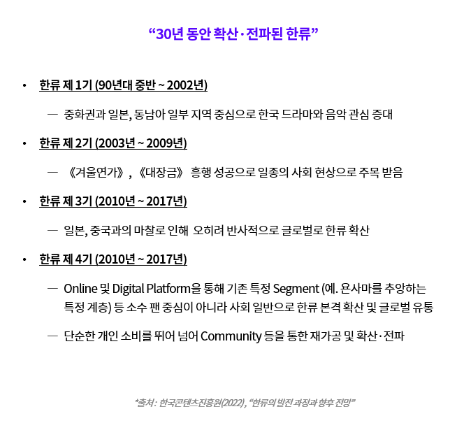 통상 한류의 역사를 지난 30년 동안 4차례 모멘텀으로 본다.