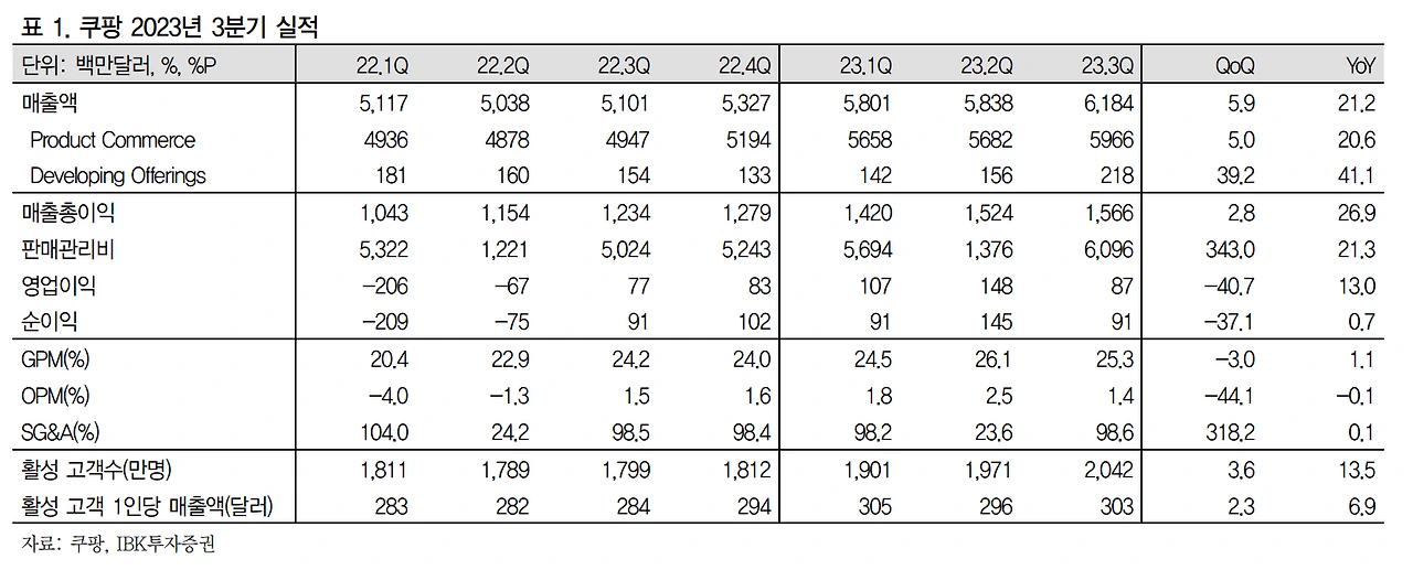 3분기에 한 번이라도 쿠팡에서 제품을 구매한 고객은 2,042만명. 2위권과의 격차는 오늘, 이 순간에도 벌어지고 있다. 알리익스프레스 정도가 특정 상품군에서 위협이 될 뿐...)