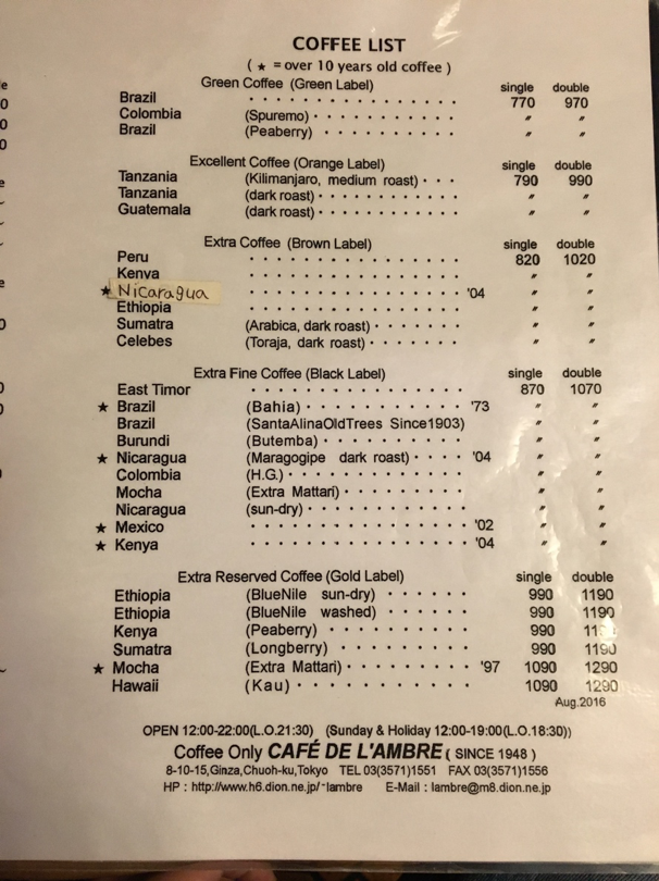 이 곳은 커피 애호가라면 다양한 의미에서 반드시 한 번은 방문해야 하는 곳이다. 도쿄 긴자의 뒷골목에 위치한 이곳은 1948년에 ‘세키구치 이치로’씨가 시작한 카페이다. 그리고 얼마 전 105세의 나이로 돌아가시기 직전까지도 카페에 출근해 직접 카페를 관리하셨다고 하니, 고인의 커피 사랑이 얼마나 대단했는지 더 말할 필요가 없을 것이다. 심지어 결혼도 하지 않으셨다고 하니 말 그대로 커피와 결혼했다는 말을 이런 분 정도 돼야 부끄럽지 않게 내뱉을 수 있는 말이 아닐까.