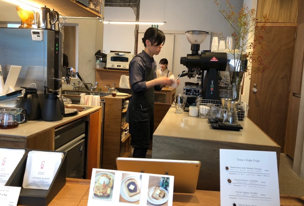 조용한 골목길 모퉁이에 위치한 아주 작은 가게인데 심지어 햄버거 집과 공간을 공유하고 있었다. 굉장히 독특한 콜라보라고나 할까. 큼지막한 창문을 통해 리드미컬한 음악이 흘러나왔다. 여성 바리스타 혼자서 작은 매장 안을 분주히 오가며 커피를 내리고 있었다. 내가 방문했을 당시에는 북유럽 노르웨이에서 도쿄에 지점을 낸 카페인 후글렌 Fuglen 원두를 사용하고 있었다. 이 날 아침은 날씨가 꽤 쌀쌀해서 따뜻한 라테 한 잔을 시켜서 다음 카페를 방문하기 위해 걸음을 재촉했다.