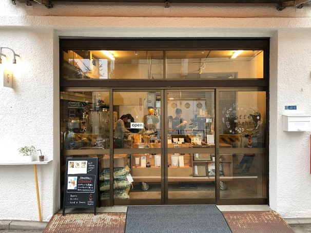 구라마에 Kuramae 라는 작은 동네까지 대략 15분 정도를 천천히 주변 풍경을 구경하며 걸어갔다. 목적지에 가까워지자 어린아이들이 시끄럽게 떠드는 작은 놀이터를 중심으로 여러 카페와 작은 상점들이 눈에 띄기 시작했다. 그리고 드디어 방문한 커피 라이트. 외관은 굉장히 투박하다. 특히 카페 정문은 그 안에 야채 가게가 있다고 해도 전혀 이상하지 않을 만큼 투박한 미닫이 문으로 되어있다. 의도한 것일까? 아니면 기존에 다른 용도의 건물로 카페가 들어오면서 문은 그대로 둔 것일까? 알 수는 없지만 왠지 후자 쪽이 아닐까, 야채 가게가 문을 닫으면서 새로 들어온 카페는 동네의 분위기에 쉽게 녹아들기 위하여 문은 그대로 두기로 결정한 것이 아닐까? 하고 말도 안 되는 상상의 나래를 펼쳐보았다.