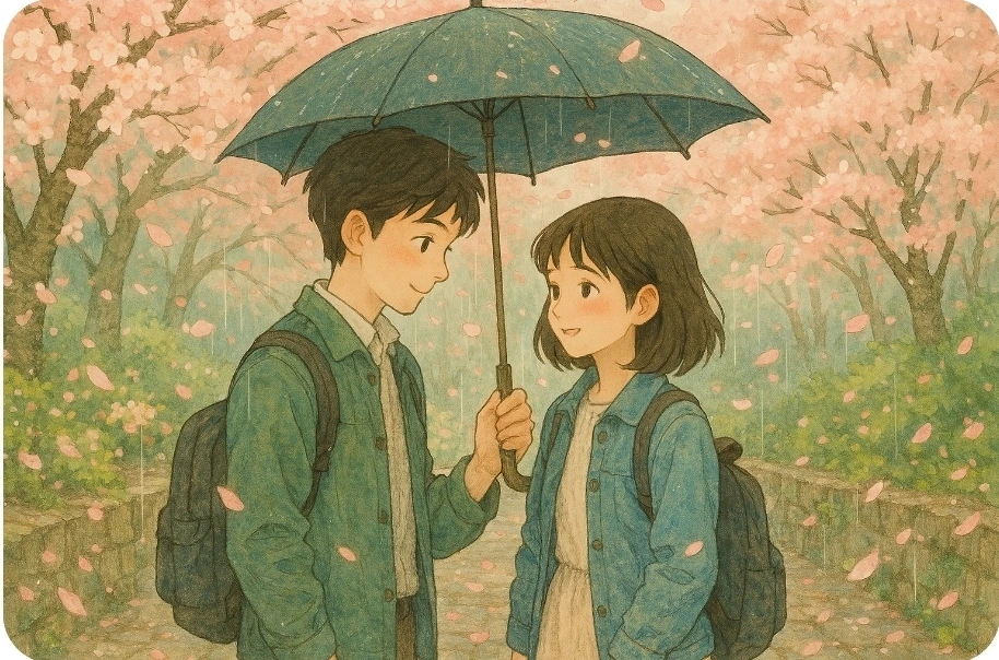 꽃잎이 바람을 타고 상큼한 봄비와 함께 흩날리던 날,