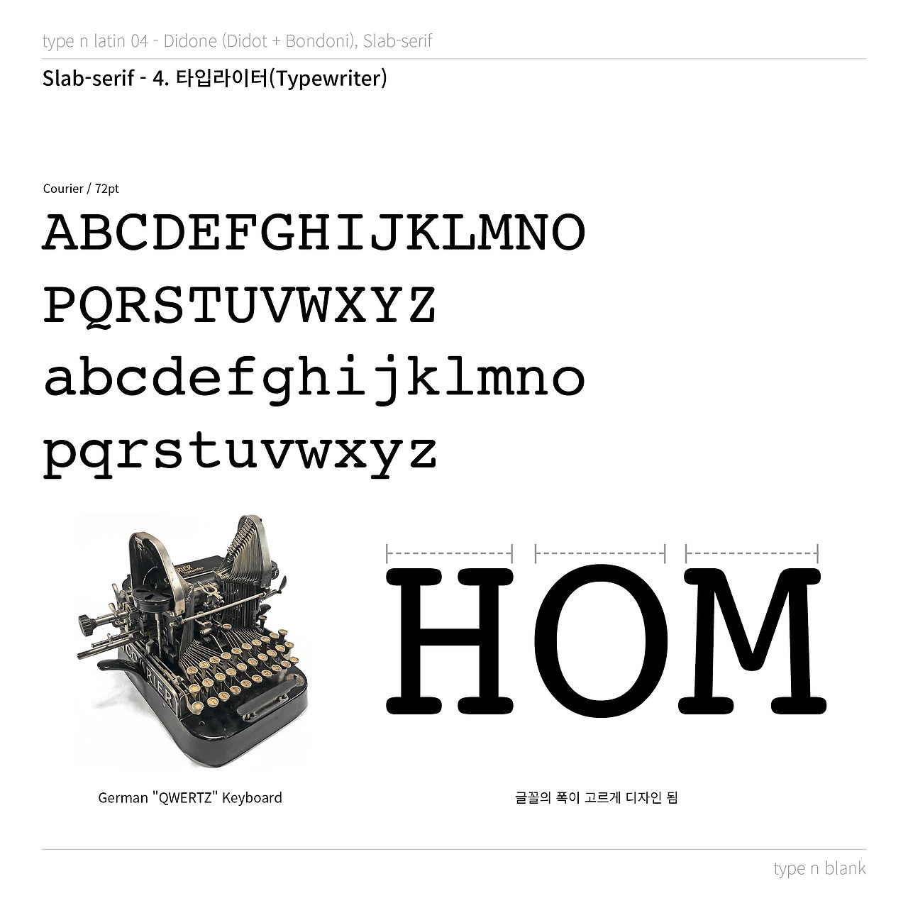 > 타자기에 쓰였던 글꼴로 모든 글자의 폭이 고르게 디자인되었습니다.
