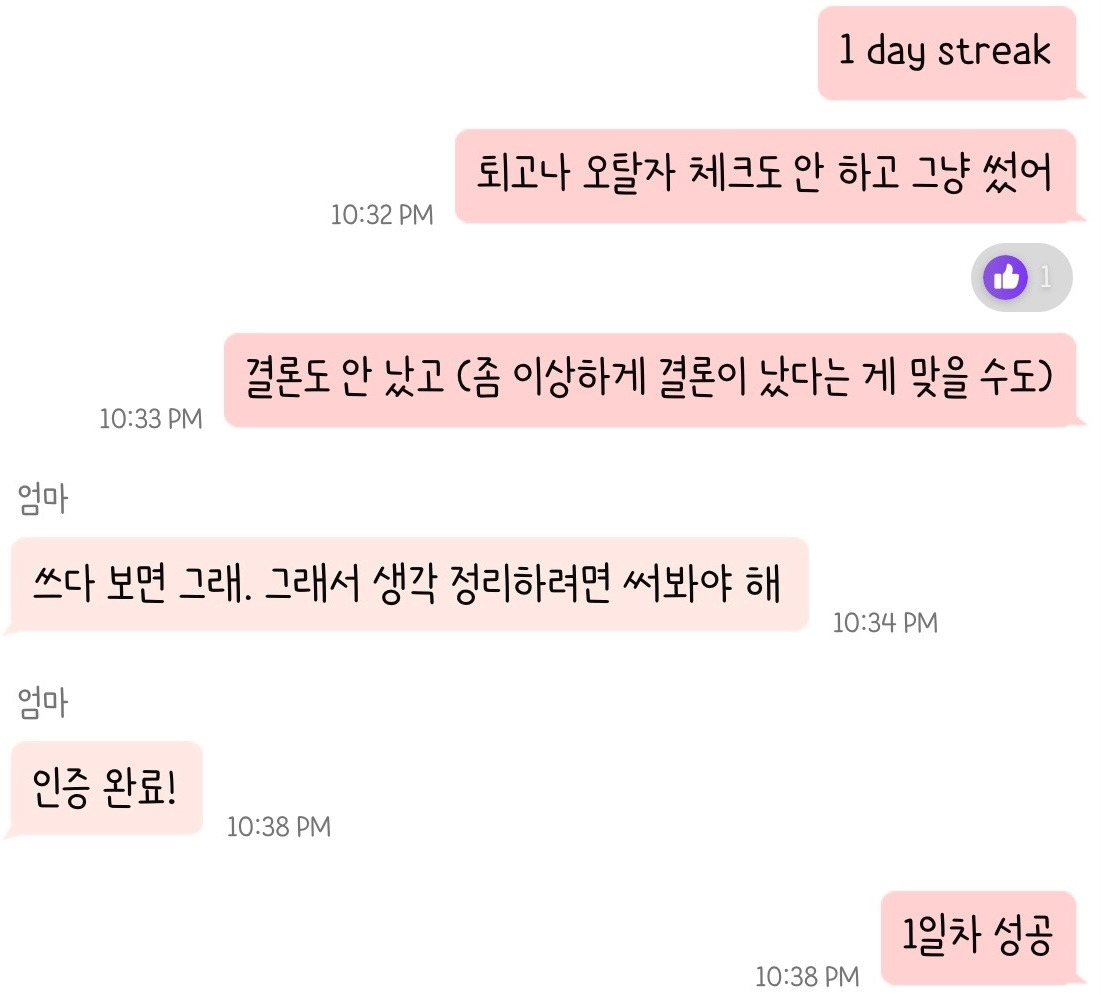 올해 2월 초부터 매일 글을 쓰고 있다. 사실 글이라고 하기에는 좀 민망하다. 매일 자정이 되기 전 워드 파일에 적어도 한 문장씩 남기고 있으니, 메모에 더 가깝다. 맹장 수술받았던 날을 제외하고는 지난 80일간 잘 지키고 있다. 처음에는 ‘매일’에 익숙해지는 게 목표였기 때문에 며칠 연속으로 성공하고 있는지 숫자를 셌다. 엄마한테 ‘n일 차 성공!’하며 인증하는 재미가 있었다.