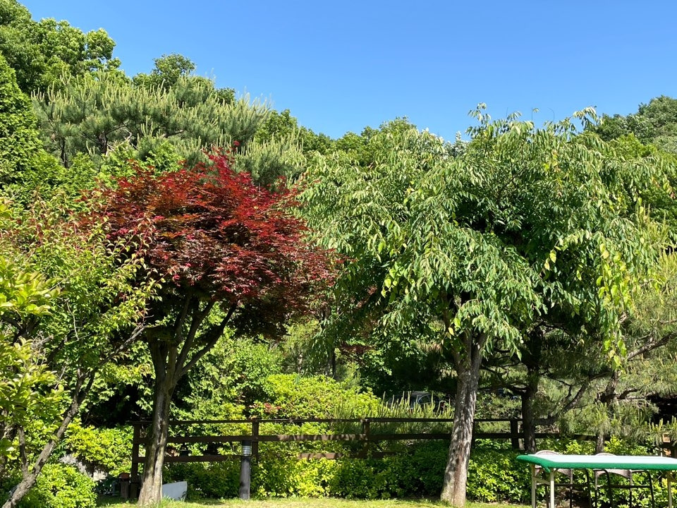 마당에 있는 단풍나무와 느티나무