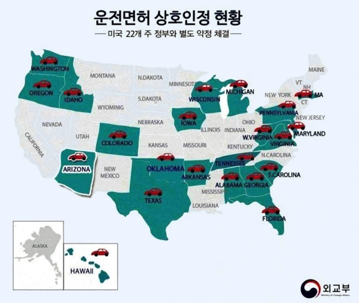 2011년 5월 24일 "한-워싱턴주 운전면허상호인정약정이 서명됨에 따라 워싱턴주에 거주하면서 유효한 한국 운전면허증을 가진 18세 이상의 한국 국민들은 필기 및 실기시험, 추가적인 운전자교육 없이 워싱턴주 운전면허증을 취득할 수 있게 되었습니다." <주 시애틀 대한민국 총영사관 공지사항>