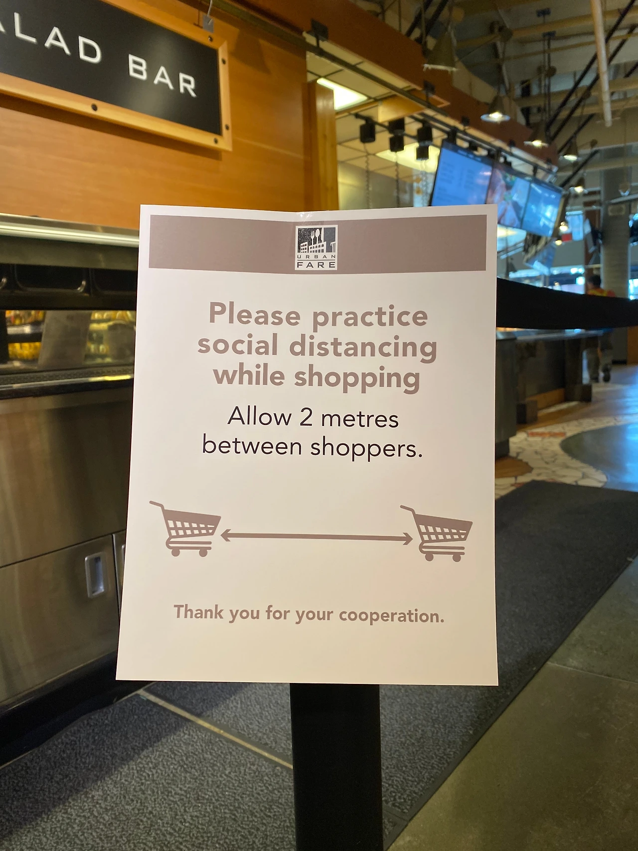 또 다른 공동체 의식을 엿볼 수 있는 곳은 식료품점이다. 뉴스, 기사, 그리고 SNS에서 전해진 외국의 사재기 현장을 보고 나는 걱정이 많았다. 하지만 밴쿠버는 비교적 대응책을 빨리 내놓고 실천하며 사람들도 이에 잘 따르고 있다. 식료품점은 개장 시간을 조정해 오전에는 노약자분들이 먼저 이용할 수 있게 하고, 인기가 많은 품목은 1인당 구매 수량을 제한하고, 매장 내 손님의 수도 관리한다. 그리고 매장 내에서 계산을 하려는 사람이나 매장 밖에서 입장 대기하는 사람들 모두 2m 간격으로 표시해둔 지점에 질서 있게 서서 자기 차례를 기다린다. 성의껏 안내하는 매장과 이를 잘 따라주는 손님의 모습은 어려운 시기에 위안이 되는 풍경이었다.