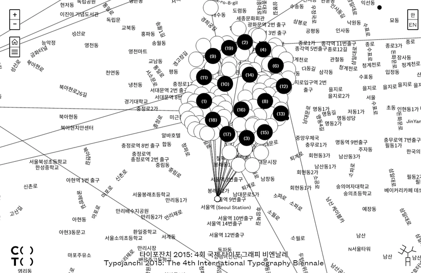두 번째는 2014년 APAP, 안양 공공예술프로젝트였다. 전시의 프로그램 내용 및 도록을 실시간으로 인쇄 가능한 레이아웃으로 변경해주는 엔진을 만들어 도록을 On-demand로 출력할 수 있도록 했다. 이것을 통해 약 500 페이지의 인쇄물을 제작했다고 한다. 그 후로 구글 폰트와 협업하여 프로젝트를 진행하면서 오픈소스 폰트에 대해 배우게 되었고 서체 디자이너들이 일상적으로 사용하는 도구들에 대해 많이 알게 되셨다고 한다.