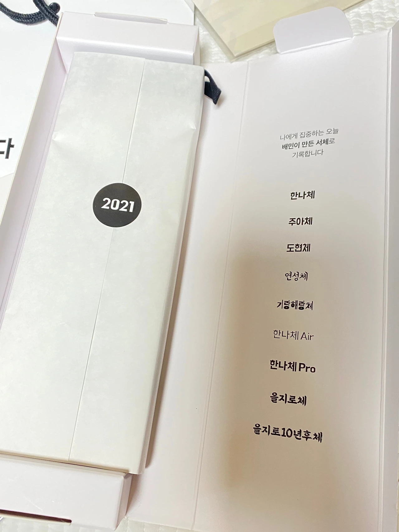 배달의 민족은 자사에서 다양한 서체를 만들어 무료로 배포하고 있다. 그중에는 유명한 "배달의 민족" 폰트 (한나체) 외에도 꽤 쓸만한 폰트들이 많다. 배민은 글꼴로 브랜드 마케팅을 한 정말 성공적인 사례라고 생각이 된다. 특히 한나체는 정말 배달의 민족을 상징하는 그 자체가 되어버린 것 같다. 뭔가 고딕체 느낌이 나지만 딱딱하지 않고 개구쟁이 같으면서 완성도 높은 그런 서체 같다. 문구세트의 "흑심 있어요" 연필, "어머, 펜이에요~" 펜 모두 귀엽지만 가장 마음에 든 건 이 365일 매일 뜯어 쓰는 "오늘에 집중" 일력이다.