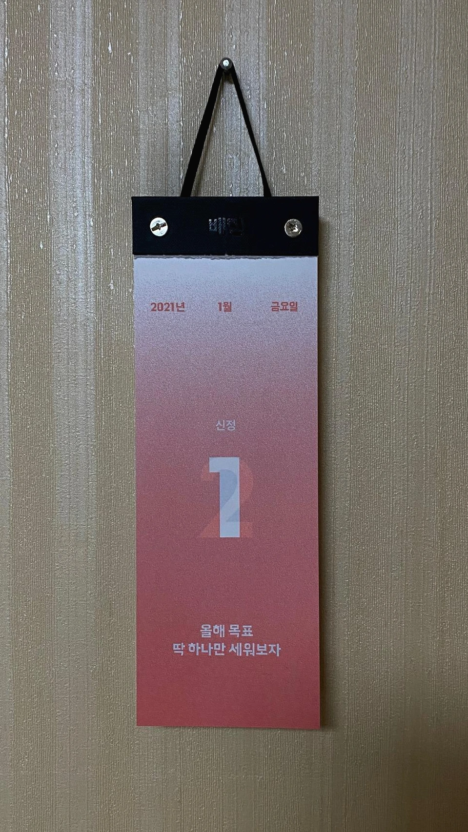 트레이싱지 같이 얇고 반들반들한 종이로 만들어진 약 25센티 크기의 이 달력은 매일매일 하나씩 뜯어 쓰는 일력으로, 이름처럼 하루하루에 집중하라고 만들어진 제품 같다.