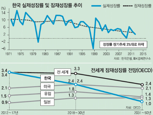 앞서 글에서도 말씀드렸지만 우리나라는 최근 5년 간 평균 3%에 미치지 못하는 경제성장률을 기록하고 있습니다. 양적 경제성장이 거의 멈춘 선진국들과 같은 길을 걷게 되는 것이죠. 앞으로는 이마저도 점점 줄어들어 2020년 대에는 평균 0~1%대의 초저성장을 할 것이라는 예측도 있습니다. 저성장기에 접어드는 우리나라 기업은 위와 같은 기업 모델을 더 이상 사용하기 어려워졌습니다. 경제성장률이 제자리이니 기업의 규모를 키우는 것보다 내실을 다져 체질을 개선하고, 새로운 기회 시장을 발굴하여 빠르게 적응하는 기업이 살아남는 상황이 된 것입니다.