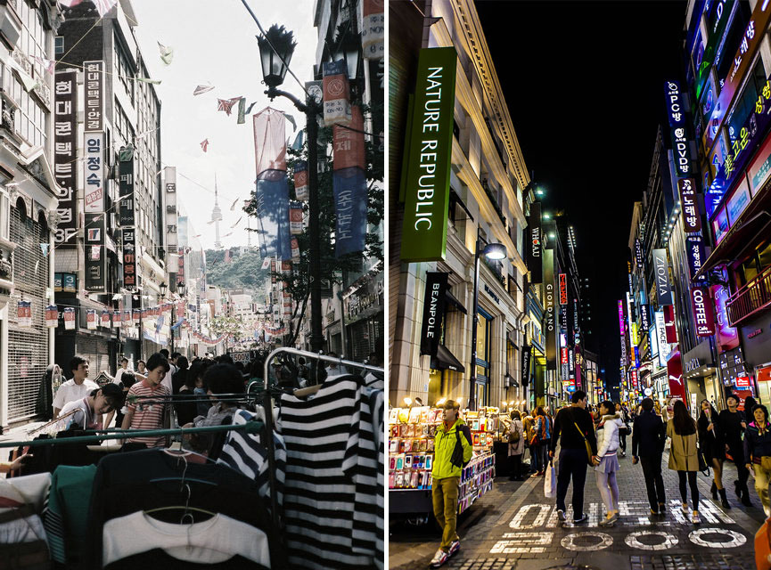 <88올림픽 당시의 명동 행사와 오늘날의 명동>