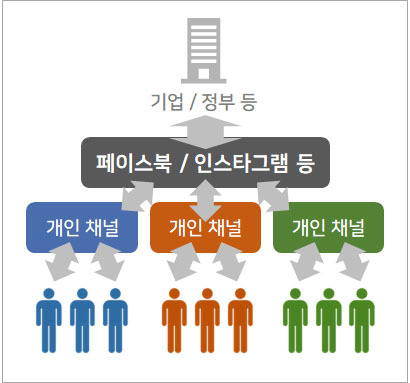 당연해보이지만, 러한 현상우리의 정보 습득 방법에 많은 변화를 가져왔기 때문에 의미가 큰데요, 예전에는 신문이나 TV 등을 통해 동일한 정보가 일방적으로 수많은 사람들에게 전달이 되었었습니다. '대세', '국민가수', '국민드라마' 등의 국민시리즈가 존재할 수 있었죠. 하지만 지금은 내 페이스북, 내 인스타그램, 내가 친구를 맺은 블로그 등 전체가 아닌 나와 관련 있는 정보들만 '뉴스' 피드라는 이름으로 나에게 당도합니다. 장보수득의 개념이 바뀐 거죠. TV나 신문 등 매스미디어가 더 이상 '매스'하지 않게 되어, 불특정 다수 모두에게 전달되는 정보는 이제 거의 사라졌다고 해도 과언이 아닙니다.
