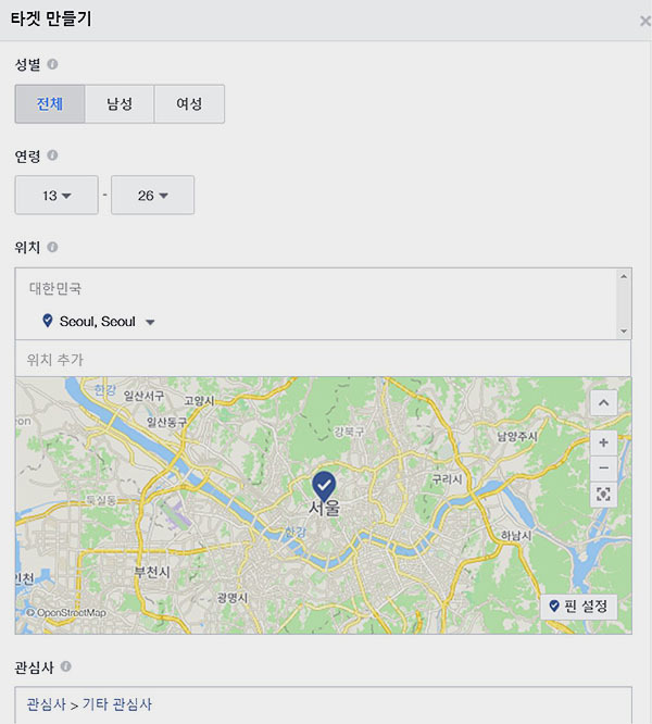 <페이스북 광고는 위와 같이 특정 연령, 성별, 관심사, 지역에 따른 타겟 홍보가 가능합니다>