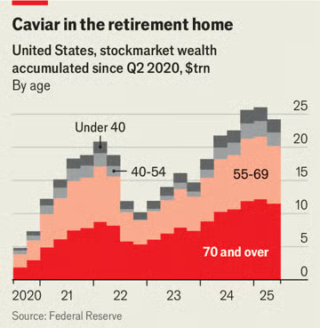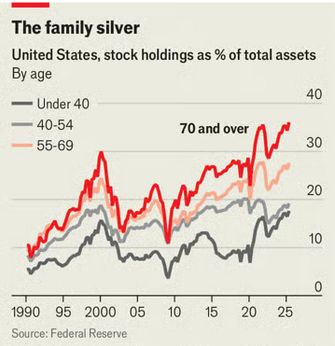 Z세대는 이미 투자 분야에 뚜렷한 족적을 남겼다. 암호화폐, FOMO(기회 상실에 대한 두려움), 밈 주식, 게임화된 투자 등이 그 예다. 하지만 덜 화려한 방식으로 진정으로 판도를 바꾸고 있는 것은 조부모 세대다. 미국의 급등하는 주식시장은 무엇보다도 고령 투자자들에 의해 주도되고 있다.