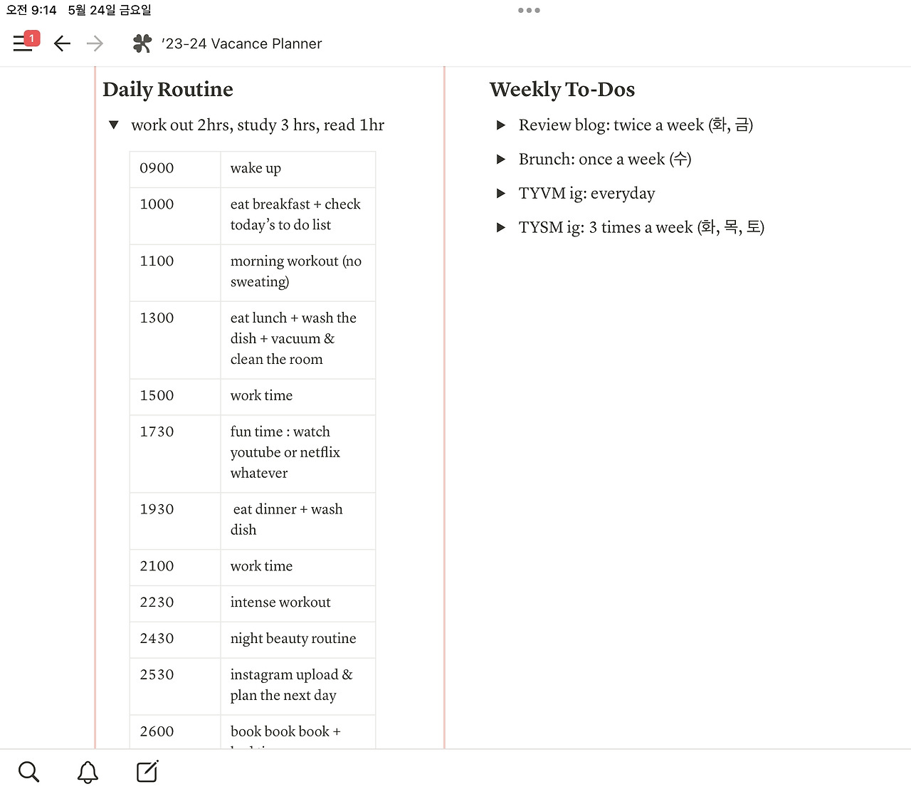 내가 루틴을 만든 방법은 가장 이상적인 나의 하루를 상상해 보는 것으로 시작했다.
