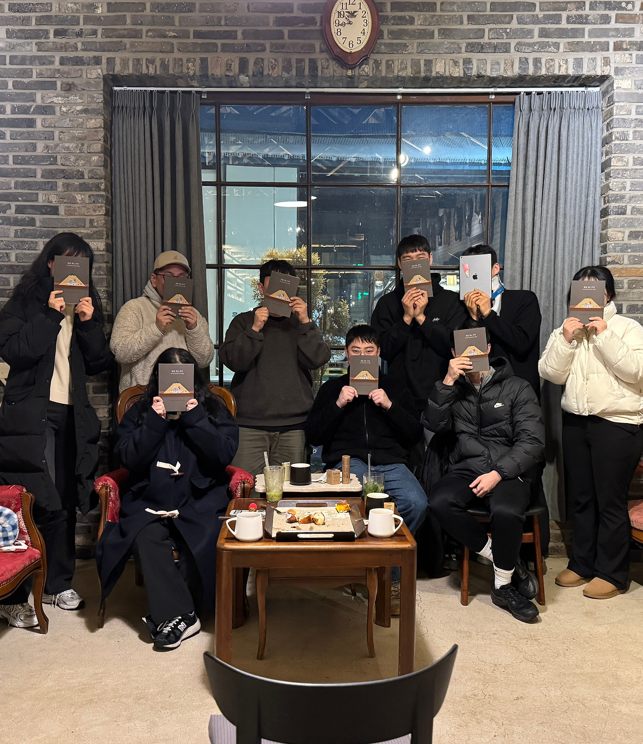 글모임 이름이 '밤을 새는 우리'인데 밤에 모인 적이 없어서, 마지막 모임은 늦은 저녁 카페에서 모였다.